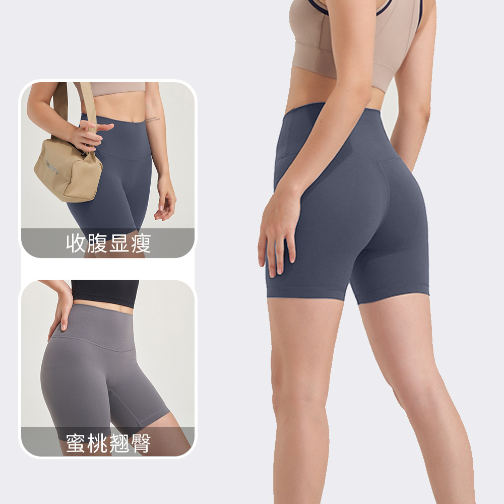 欧美裸感瑜伽裤女五分短裤高腰提臀紧身打底健身裤弹力运动紧身裤