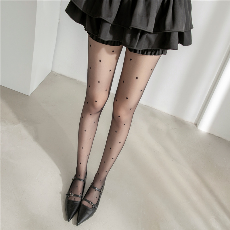 0D波点丝袜美腿性感超薄高透黑丝夏季爱心黑色连裤袜防勾丝任意剪