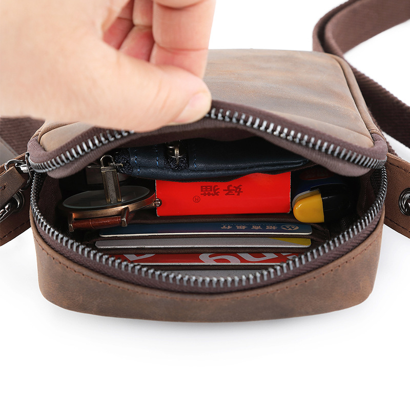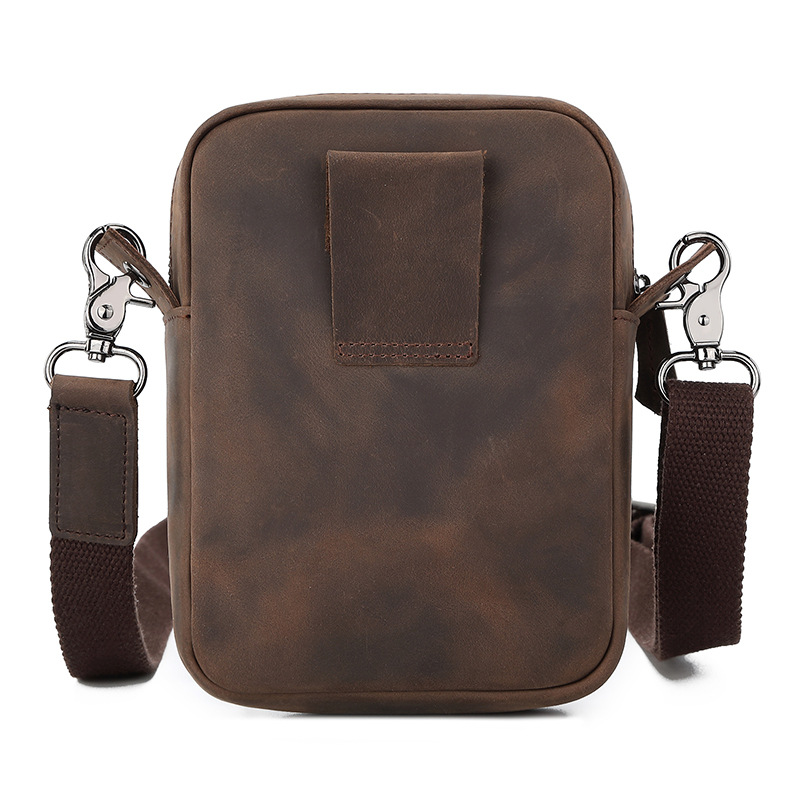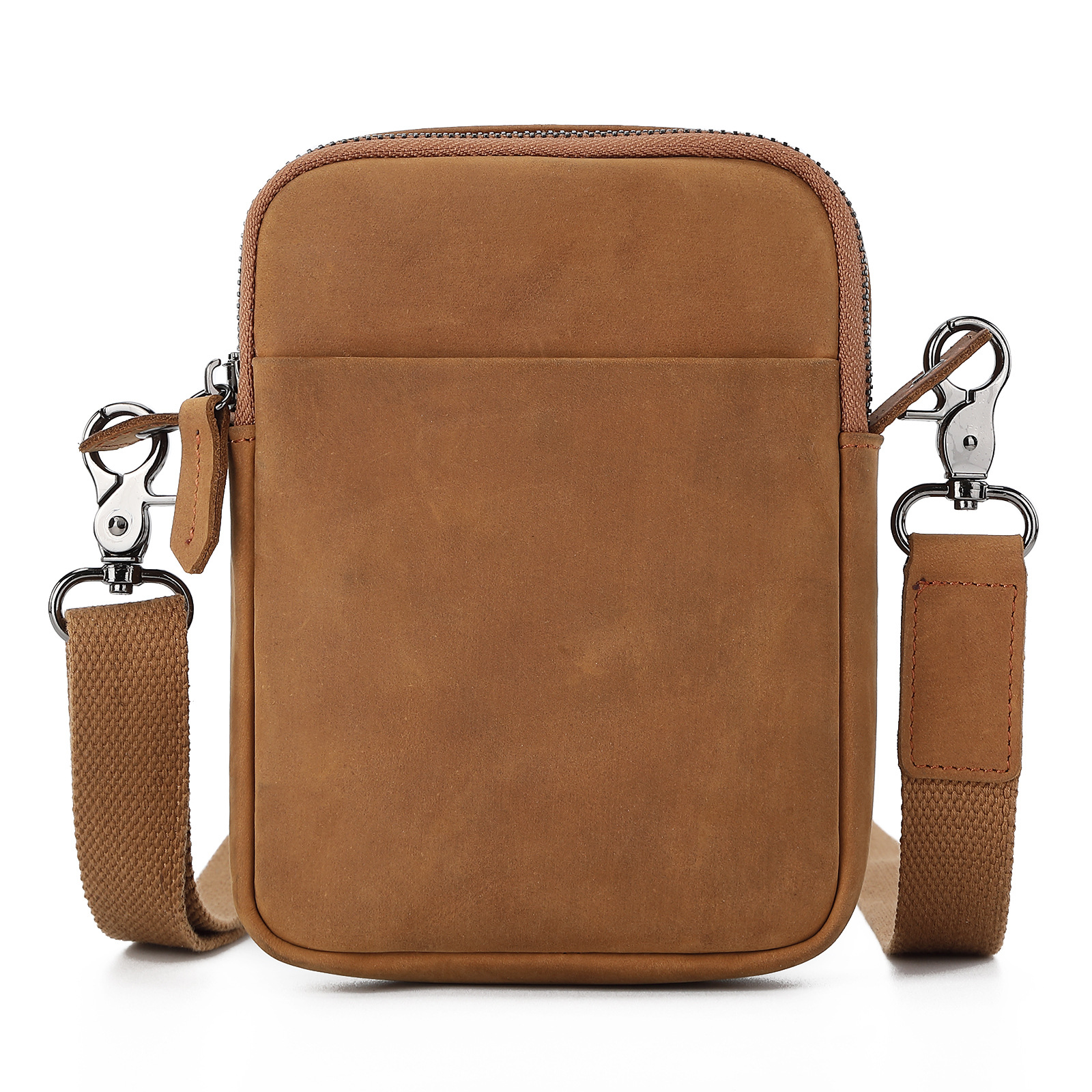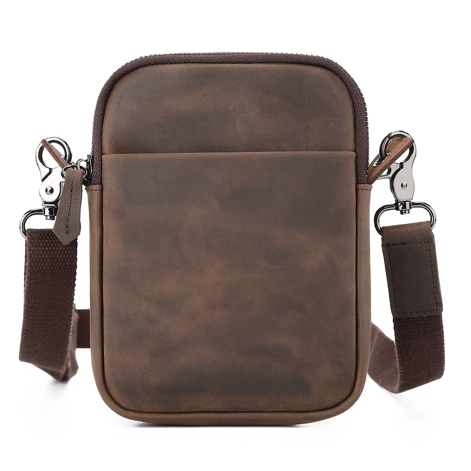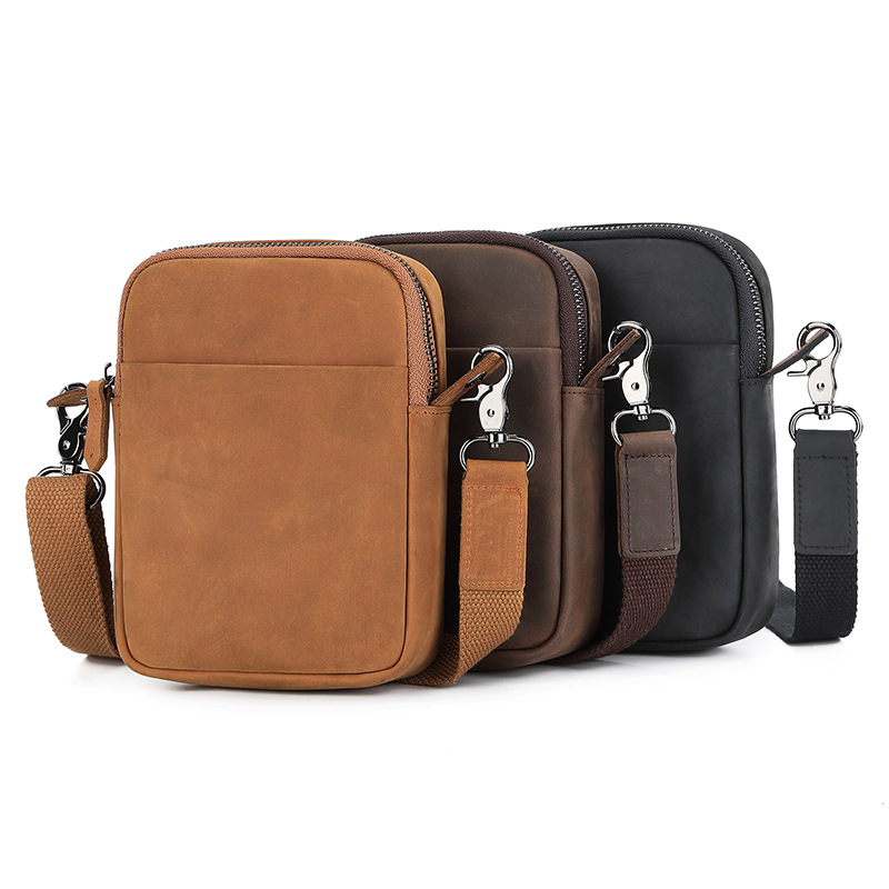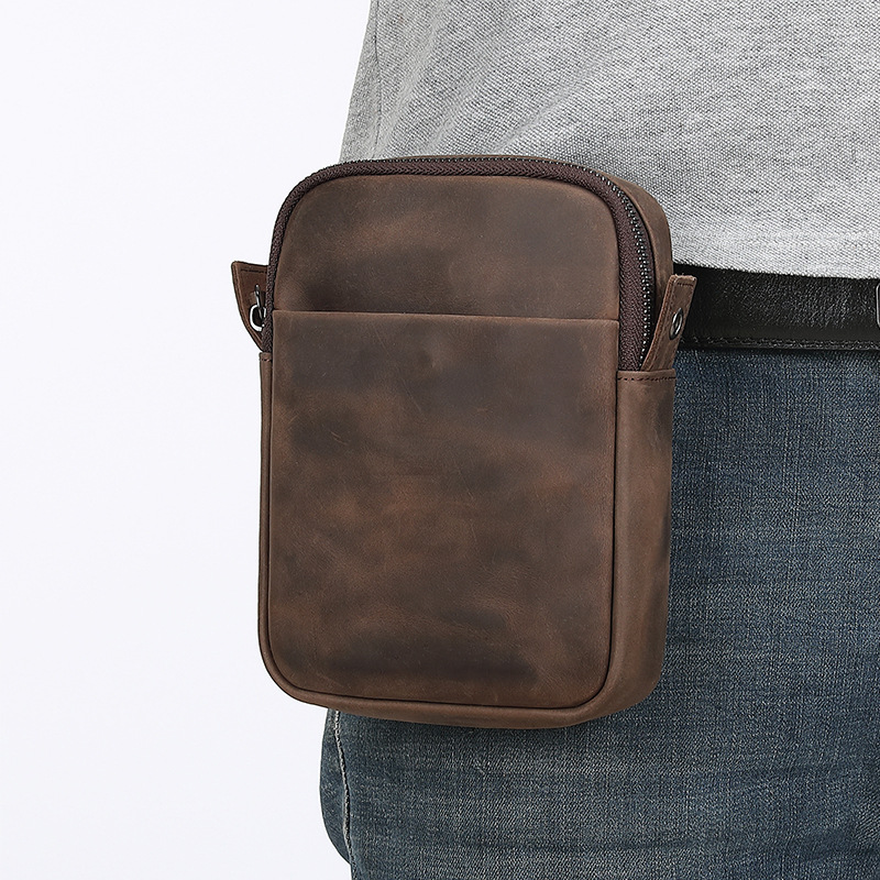 男士真皮腰包疯马皮单肩斜挎包多功能穿皮带挂包户外运动皮手机包