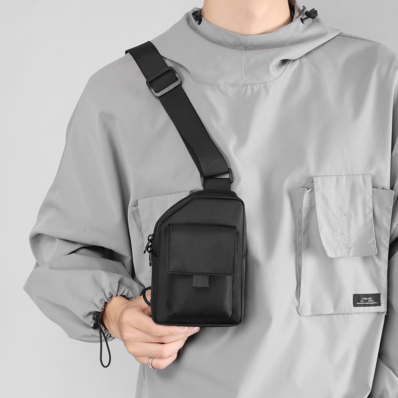 潮牌胸包男时尚运动斜跨包 潮流纯色单肩包 休闲百搭手机小包