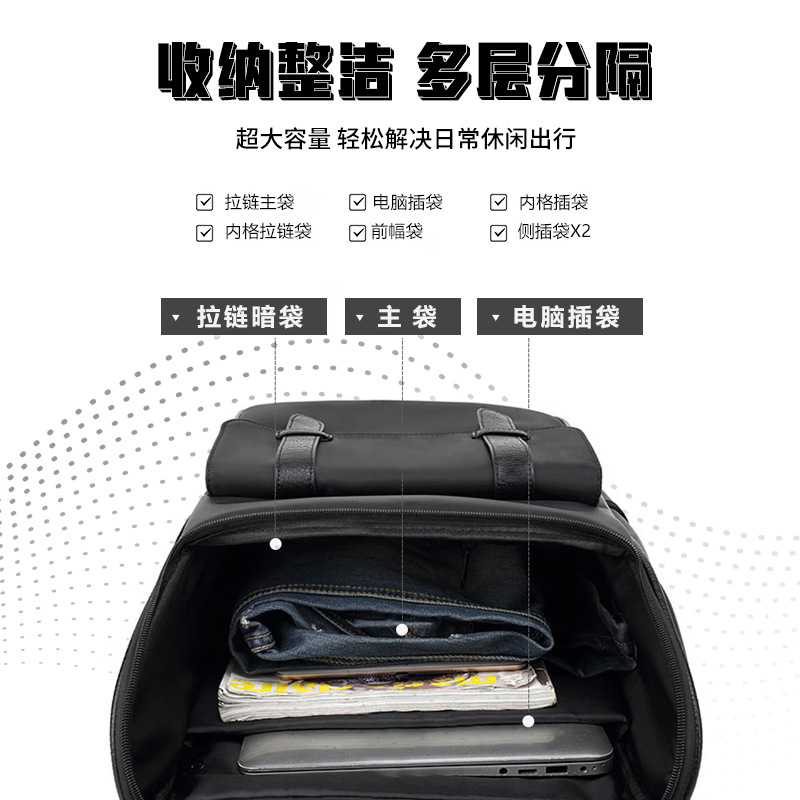 新款休闲大容量黑色双肩包初高中生书包背包防泼水商务电脑包