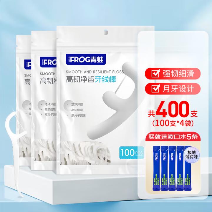 青蛙洁齿牙线棒便携盒装柔韧超细圆线牙签