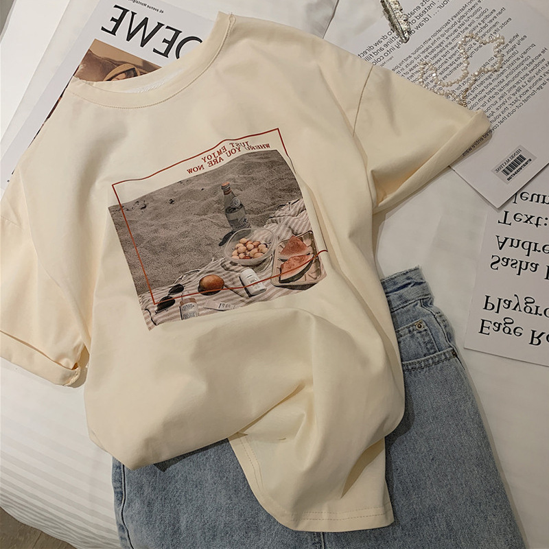 夏季韩版BF风宽松百搭印花学生短袖T恤女休闲港风网红上衣