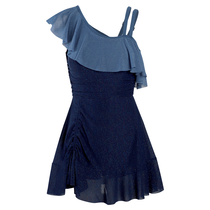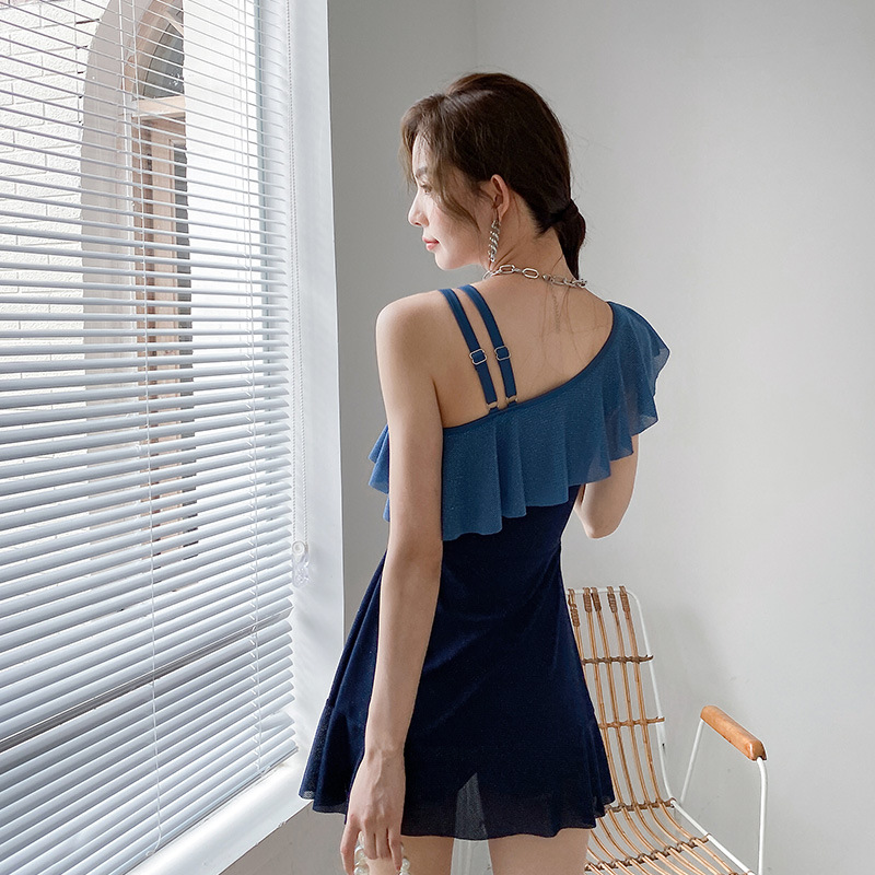 温泉泳衣女新款韩版连体裙式游泳衣平角保守遮肚显瘦连体泳装