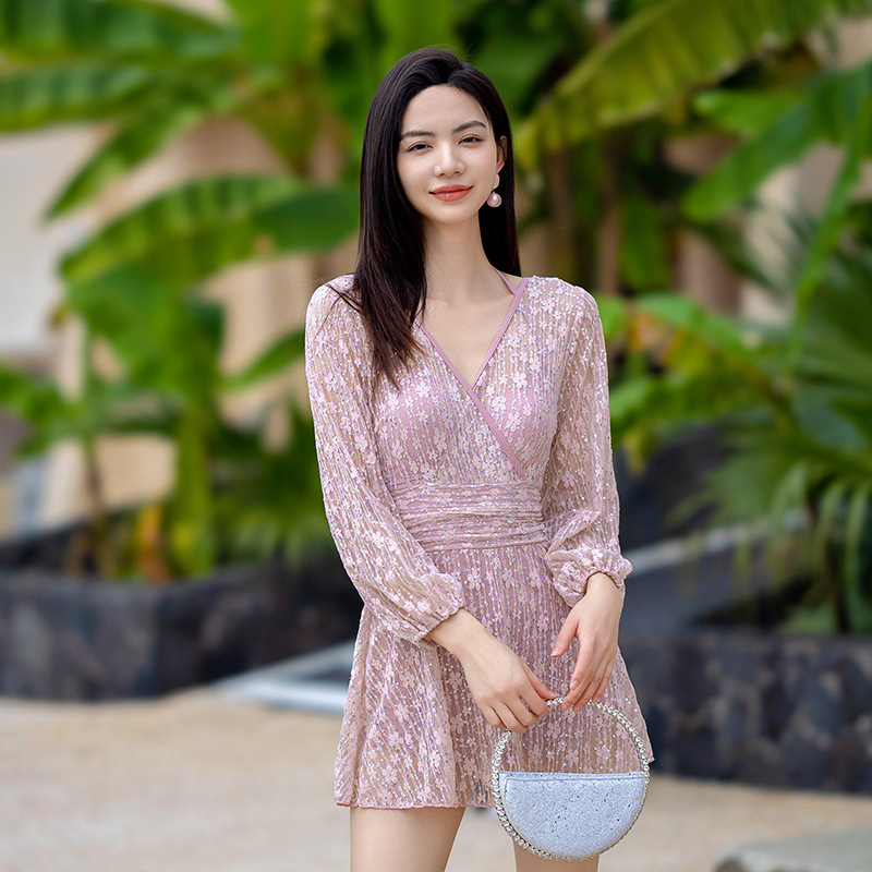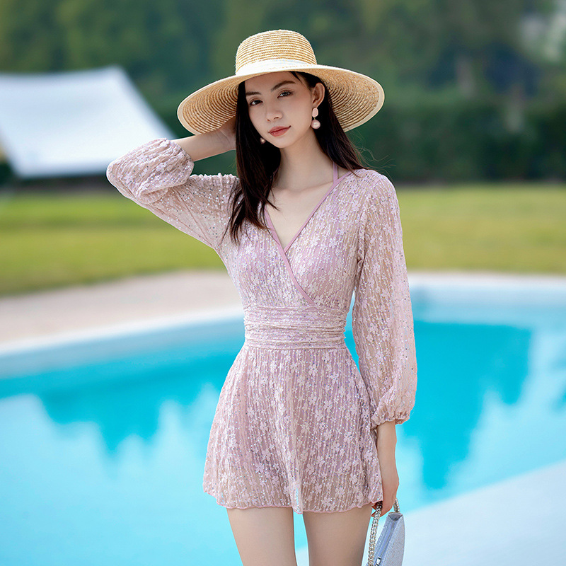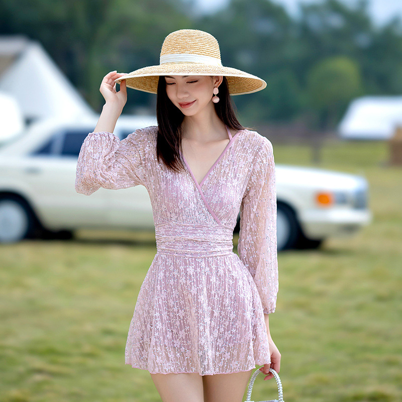汐歌儿泳衣女夏季新款连体裙式泳衣遮肚显瘦聚拢海边游泳衣女