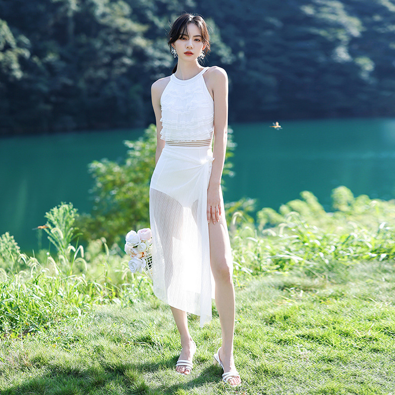 珍珠腰链女高级感甜酷少女装饰连衣裙身体链蹦迪可调节肚脐链腰带