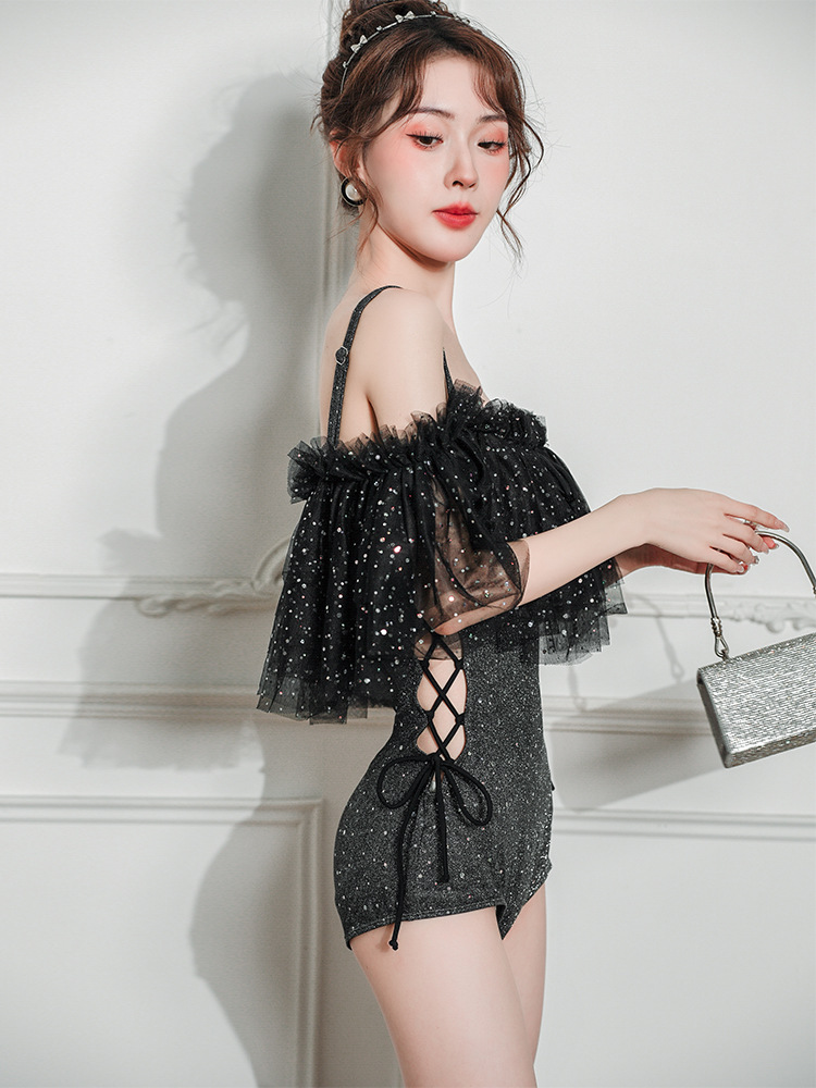 新款三角连体泳装女小清新ins风小胸性感保守显瘦泡温泉少女泳衣