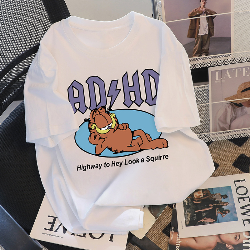 重磅纯棉美式卡通印花短袖t恤女夏季新款慵懒风三条杠情侣上衣潮