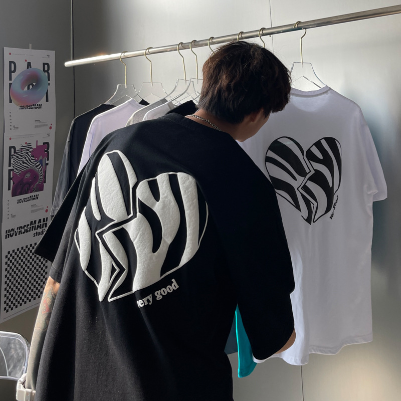 棉爱心短袖t恤男潮牌小众设计感美式夏衣服ins港风宽松潮流百搭