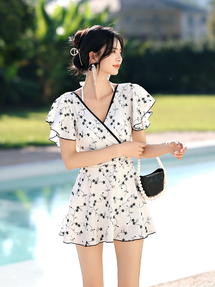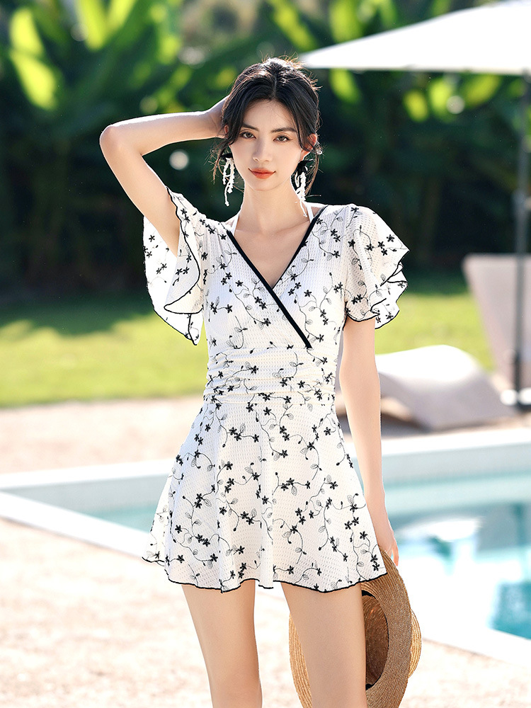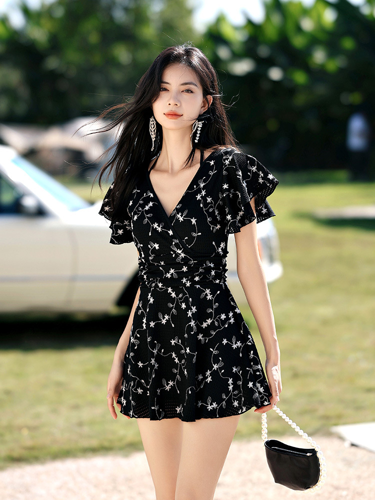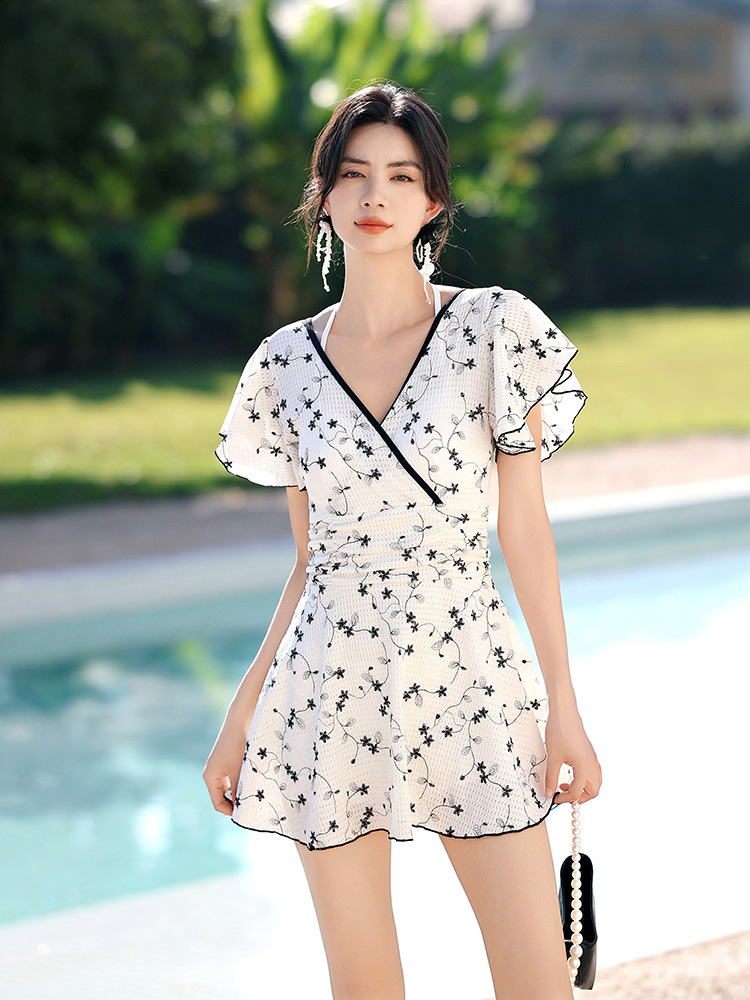 韩版时尚泳衣女连体裙式平角保守泳装新款度假泡温泉游泳衣女
