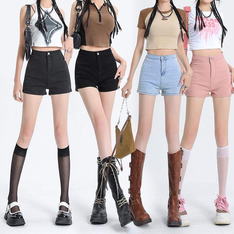 高腰紧身牛仔短裤女紧身包臀字热裤新拉链夏季甜辣风