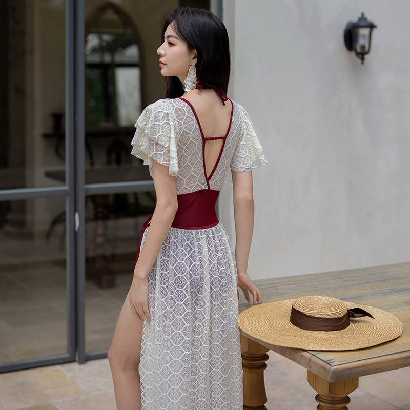 汐歌儿时尚拼色泳衣女新款连体比基尼两件套小胸聚拢温泉游泳衣女