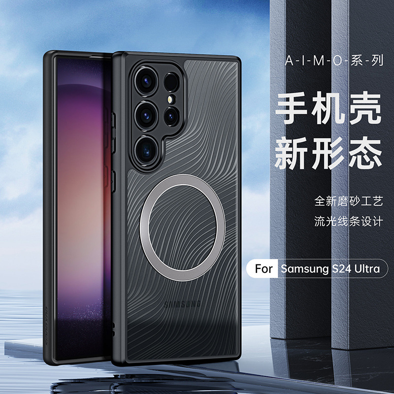 适用三星S24Ultra磁吸支架手机壳防变色 S24Plus磨砂透明后壳
