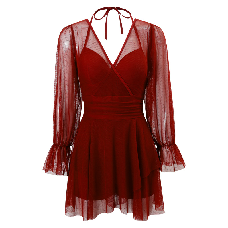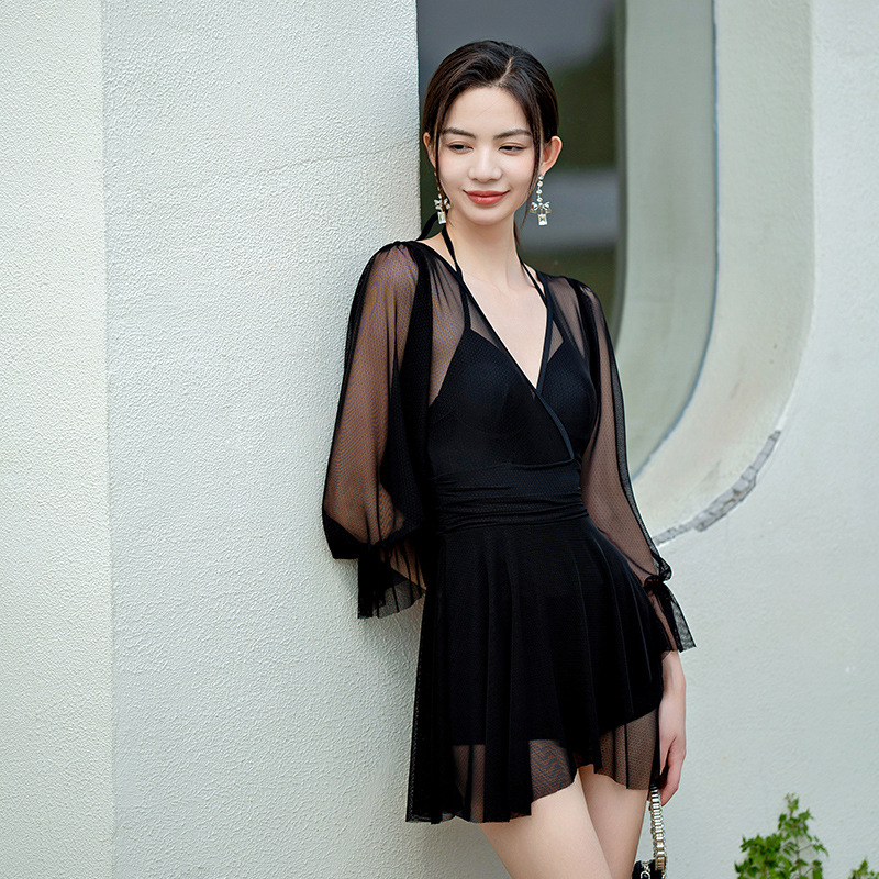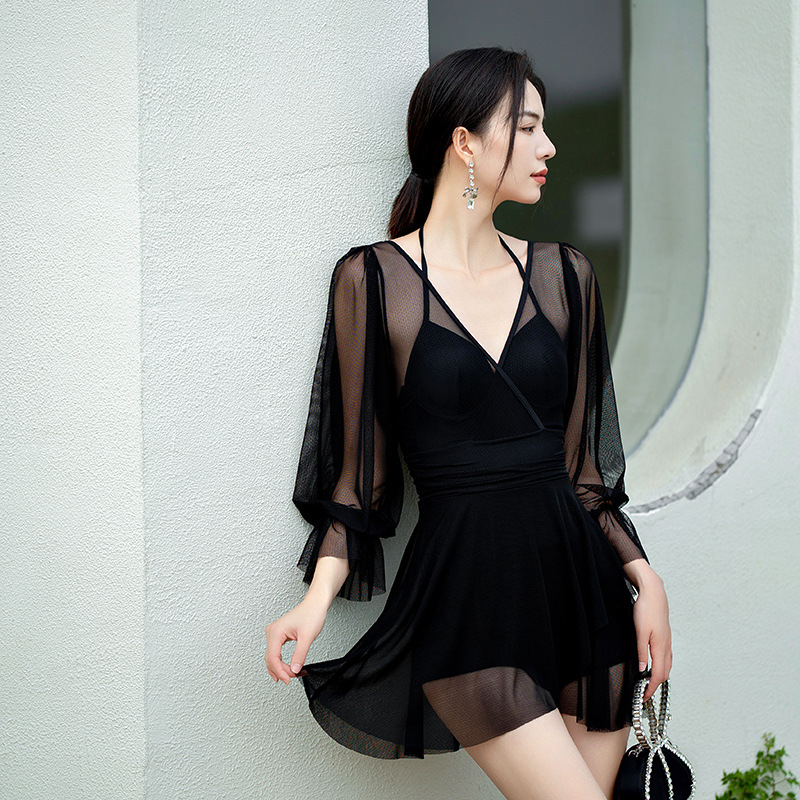 泳衣女高腰遮肚显瘦长袖连体泳衣女夏季新款韩版保守海边度假泳装