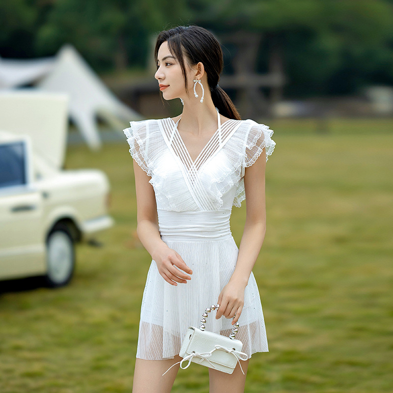 汐歌儿 新款泳衣女连体裙式韩版露背泳装遮肚显瘦海边度假游泳衣