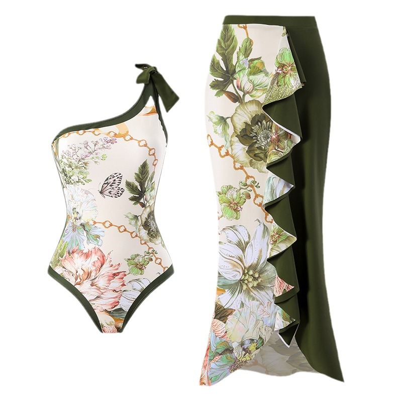 【波西米亚风套装女士泳衣】定版数码印花单肩带连体衣防晒沙滩裙