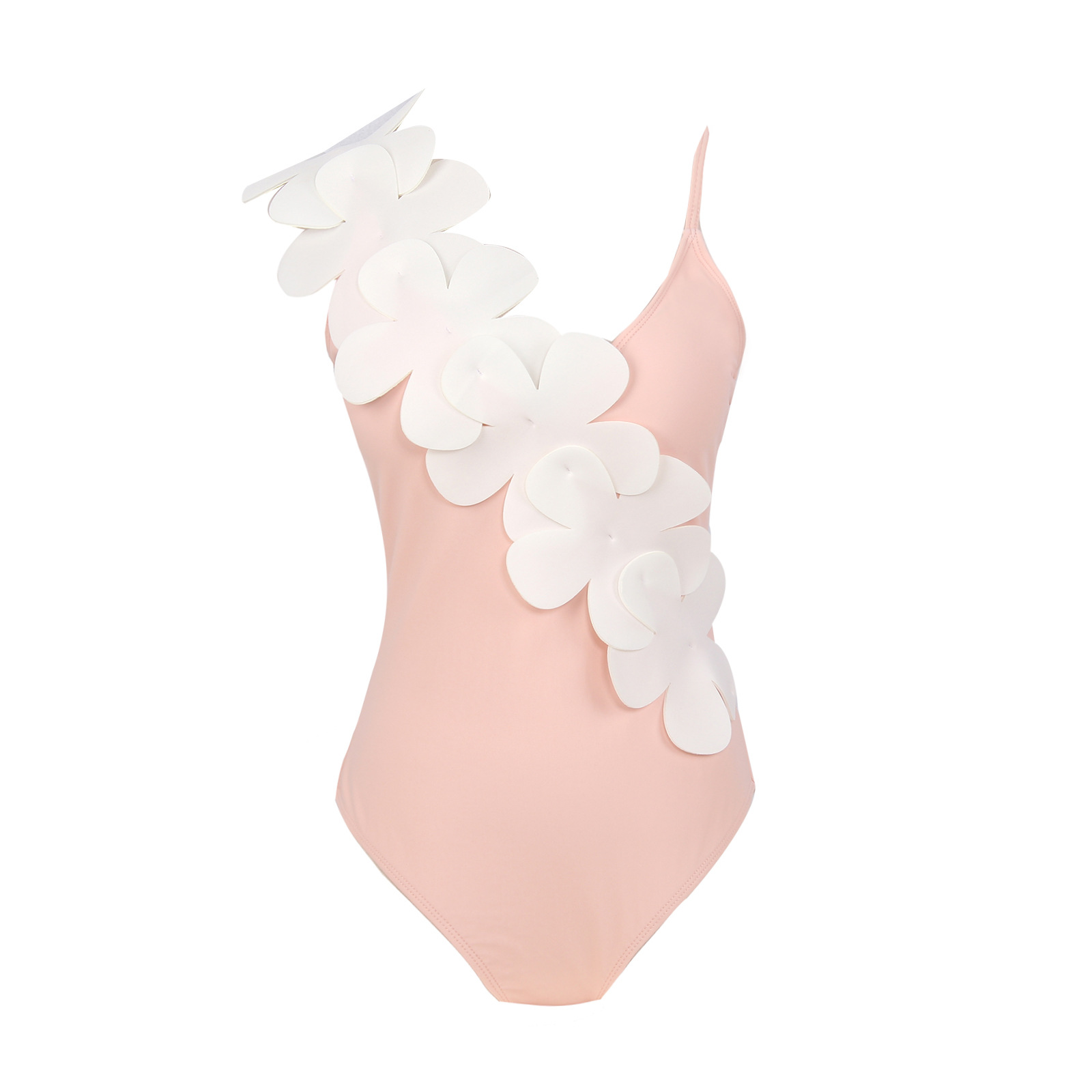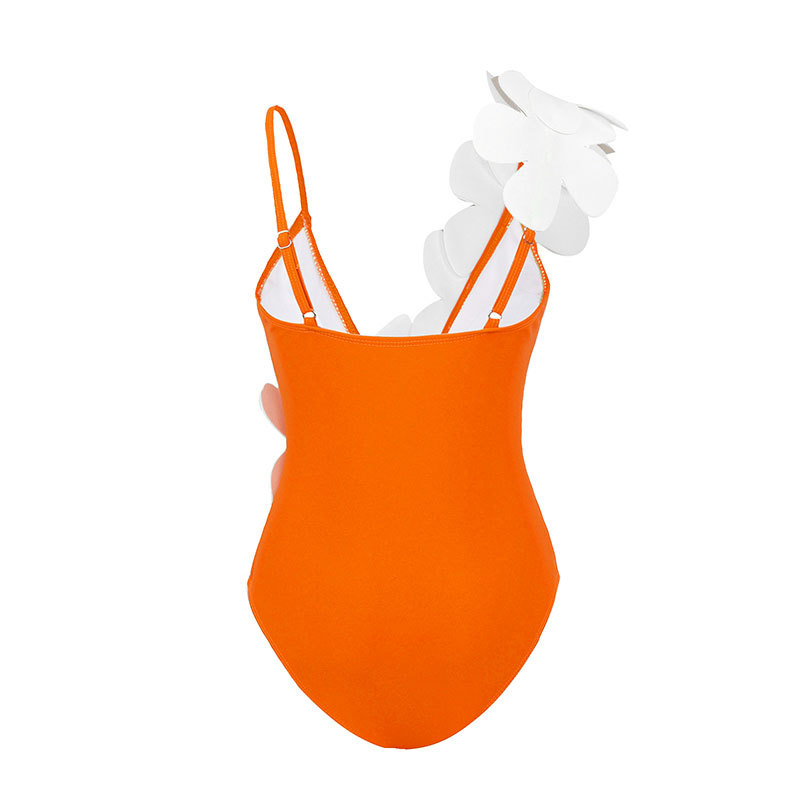 【欧美度假风套装泳衣女】纯色多色白色花瓣点缀连体纱裙亚马逊款
