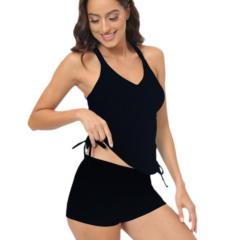 【欧美新款坦基尼女】多色抽绳设计修身显瘦独立平角裤保守游泳衣