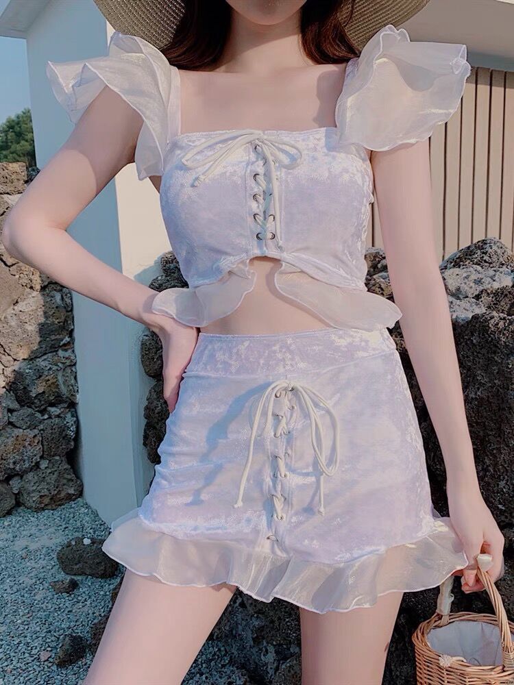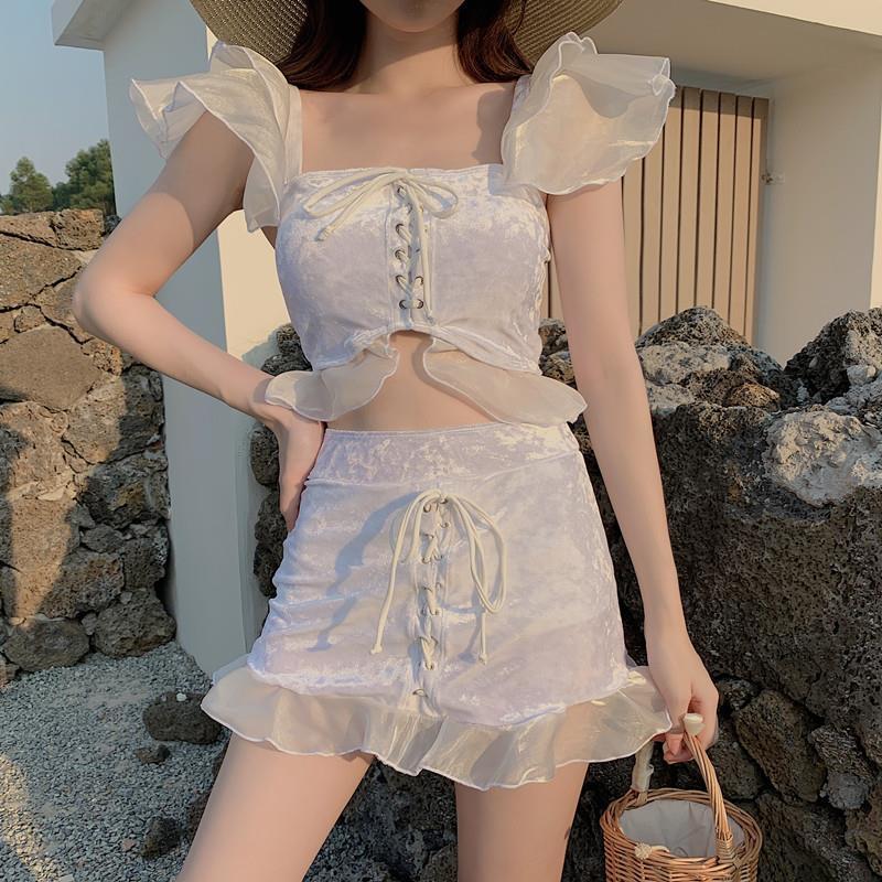 泳衣女夏新款仙女范保守分体两件套显瘦学生仙气泡温泉泳装