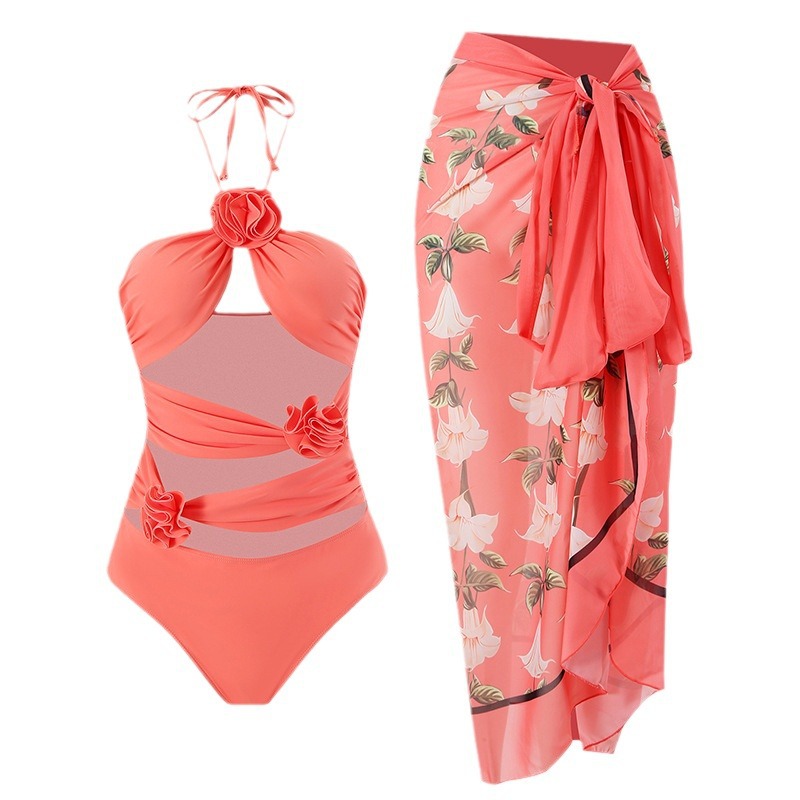 【波西米亚风新款泳衣女】沙滩度假纱裙防晒多色连体套装欧美泳装