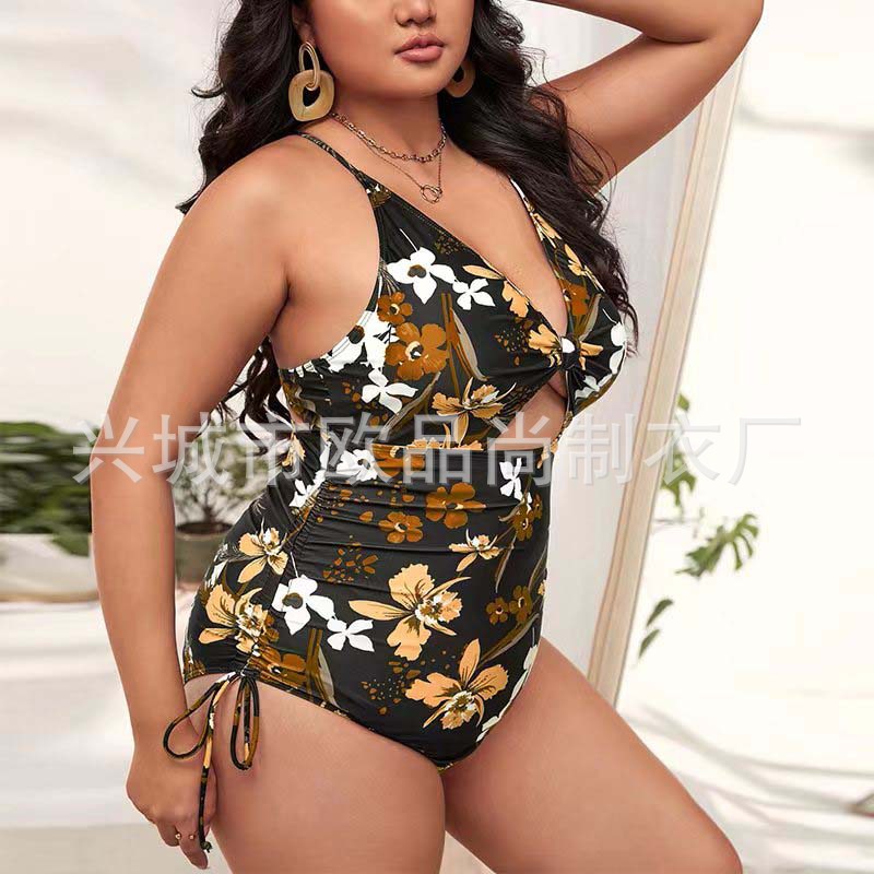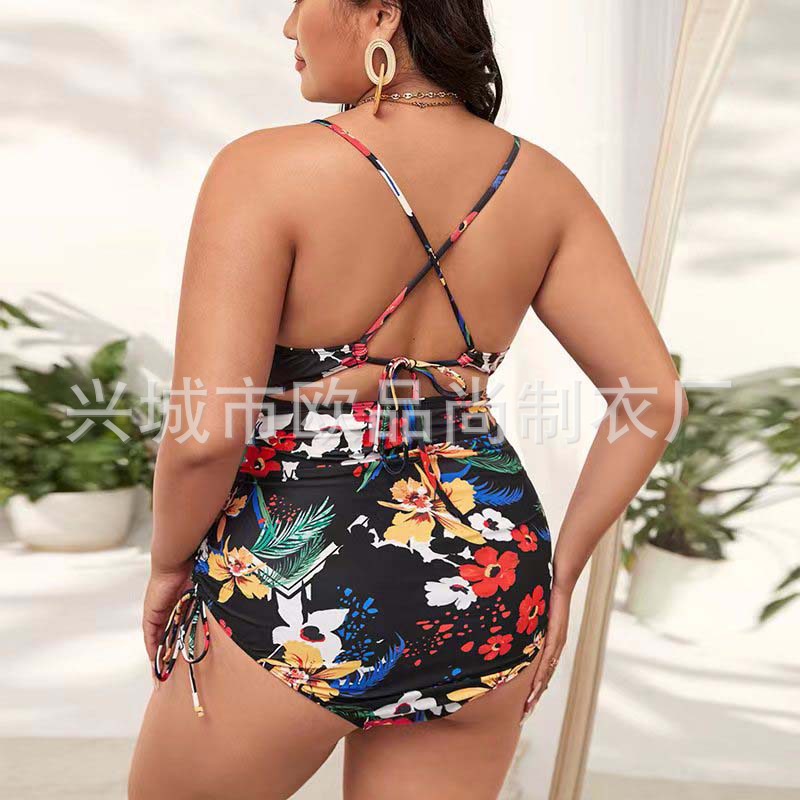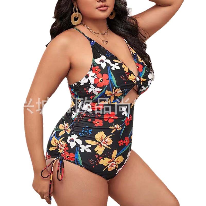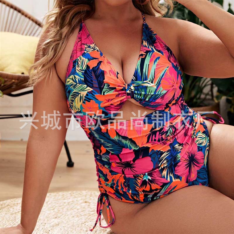 【欧美大码泳衣女】亚马逊跨境大码肥婆印花多色连体三角裤女泳装
