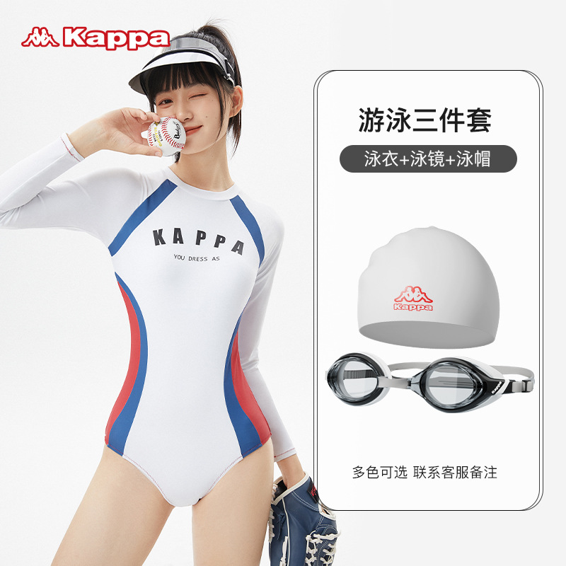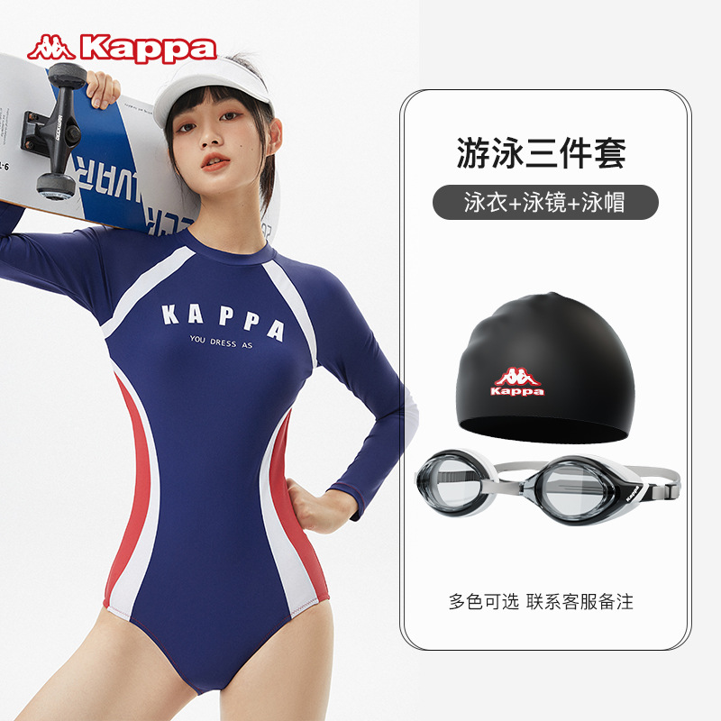 kappa泳衣女长袖连体三角保守新款时尚大码泡温泉专业游泳衣