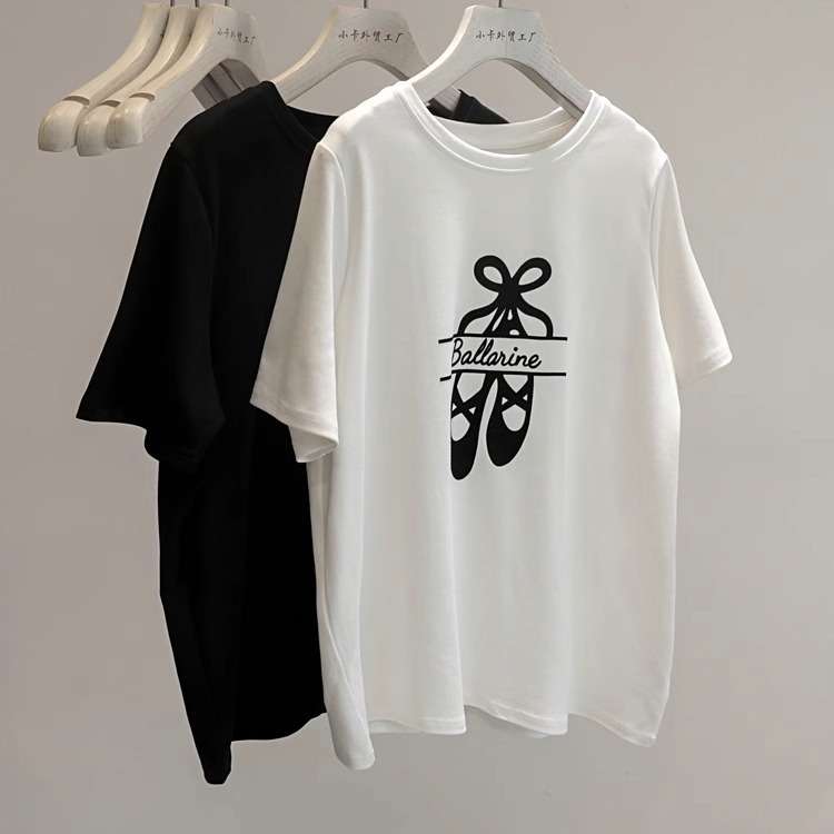 日常又有品!印花正肩短袖T恤衫女时尚百搭亲肤内搭打底衫上衣