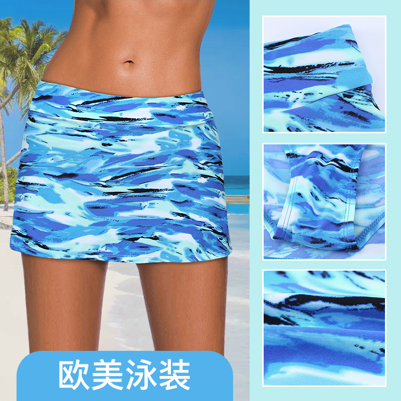 时颖欧美双层裙式泳裤女性感成人沙滩裤高腰游泳裤女士