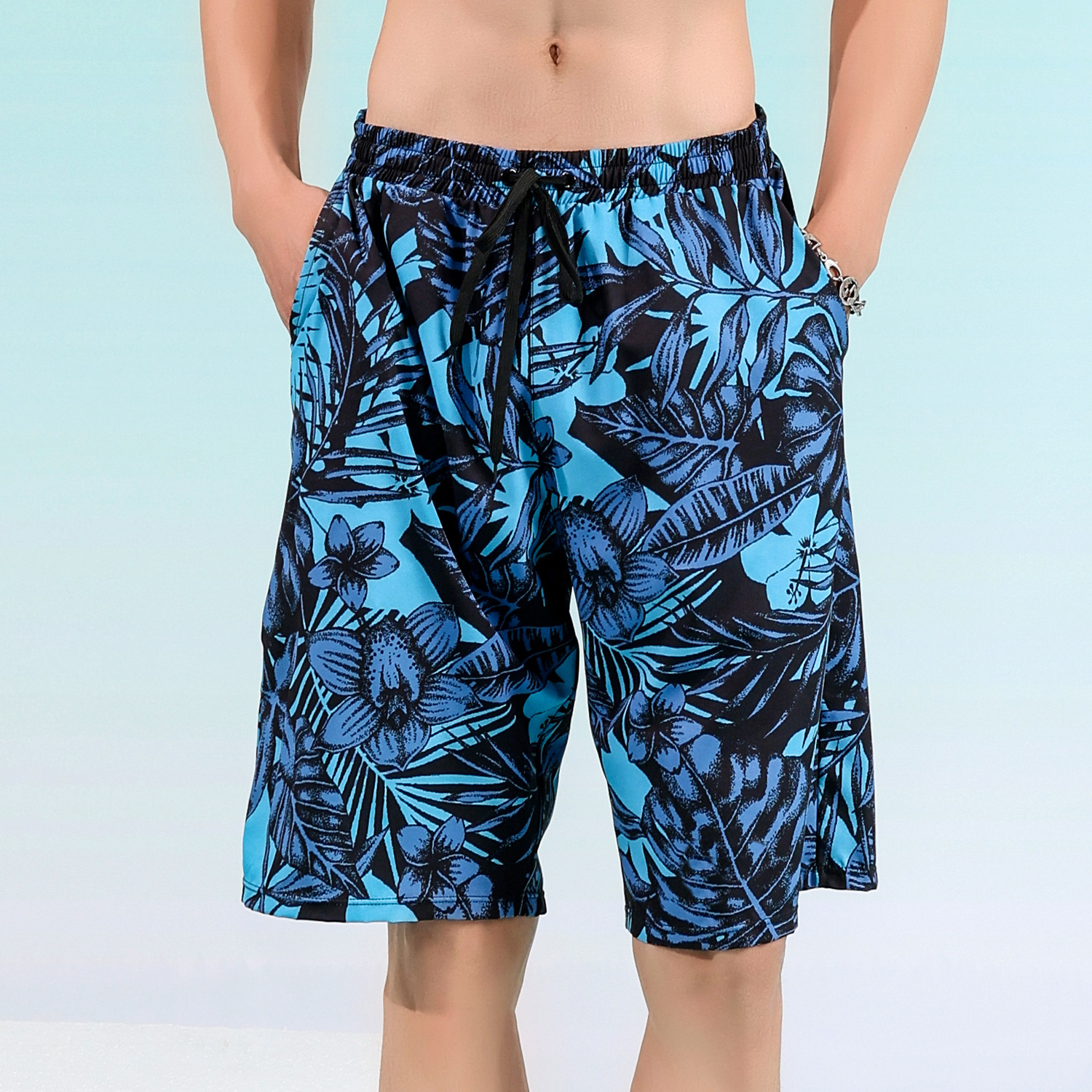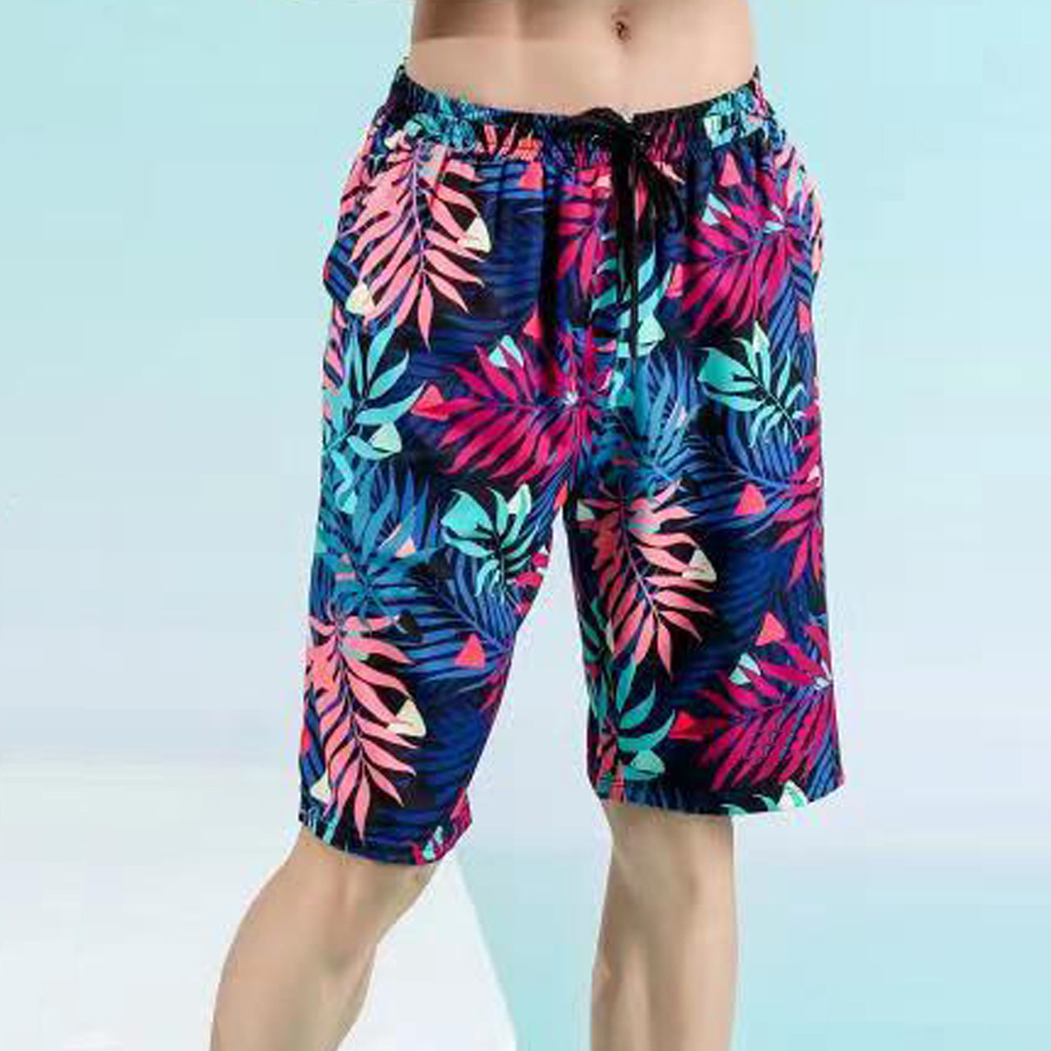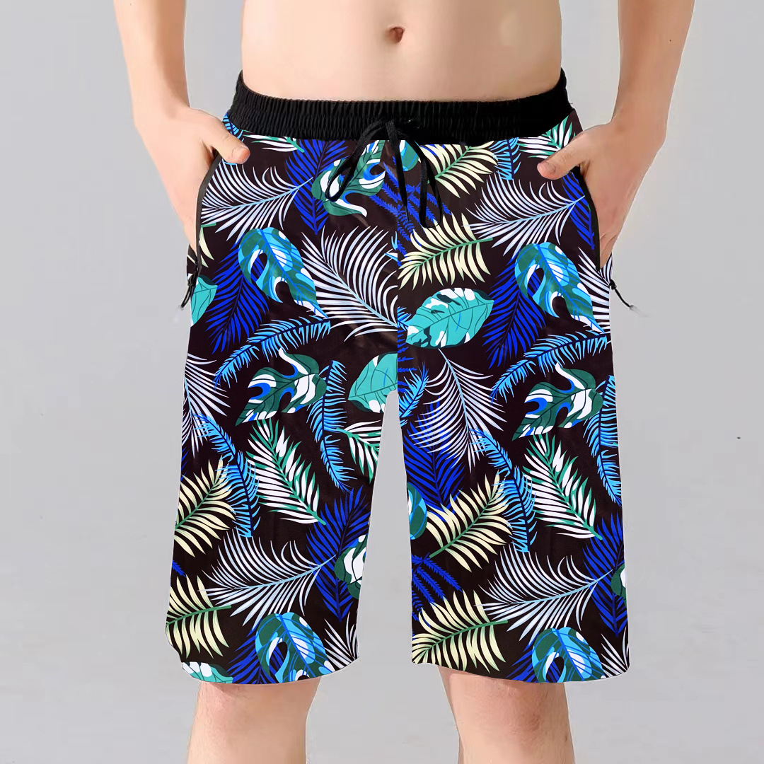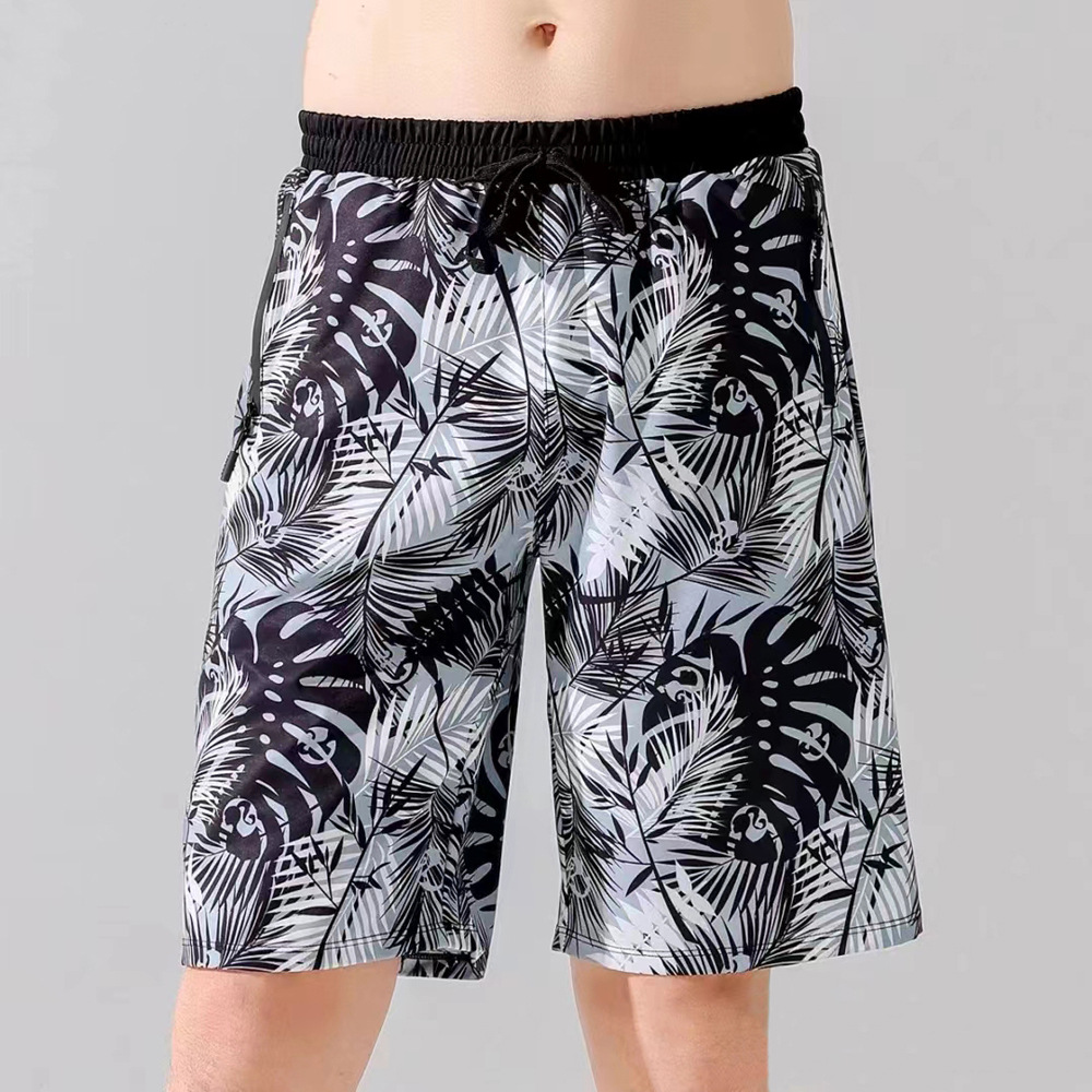 双层五分泳裤印花平角拉链防尴尬游泳裤男时尚大码泡温泉男士泳裤