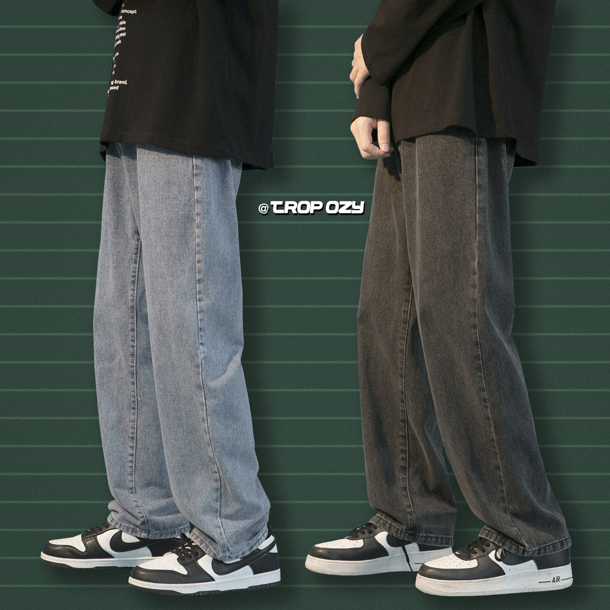 春秋新品男装牛仔裤宽松直筒男潮流长裤学生青少年街头简约裤