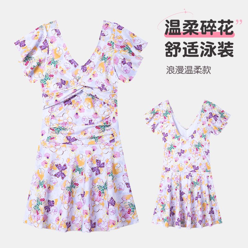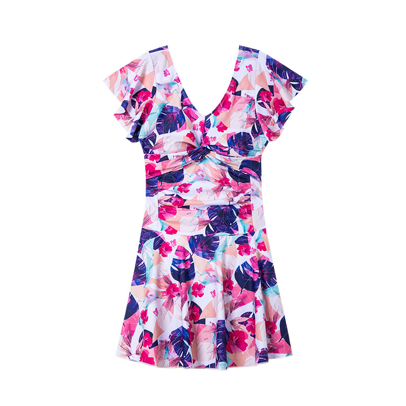 显瘦辣妹装性感泳衣女露背碎花游泳衣批发海边度假仙女泳装带胸垫