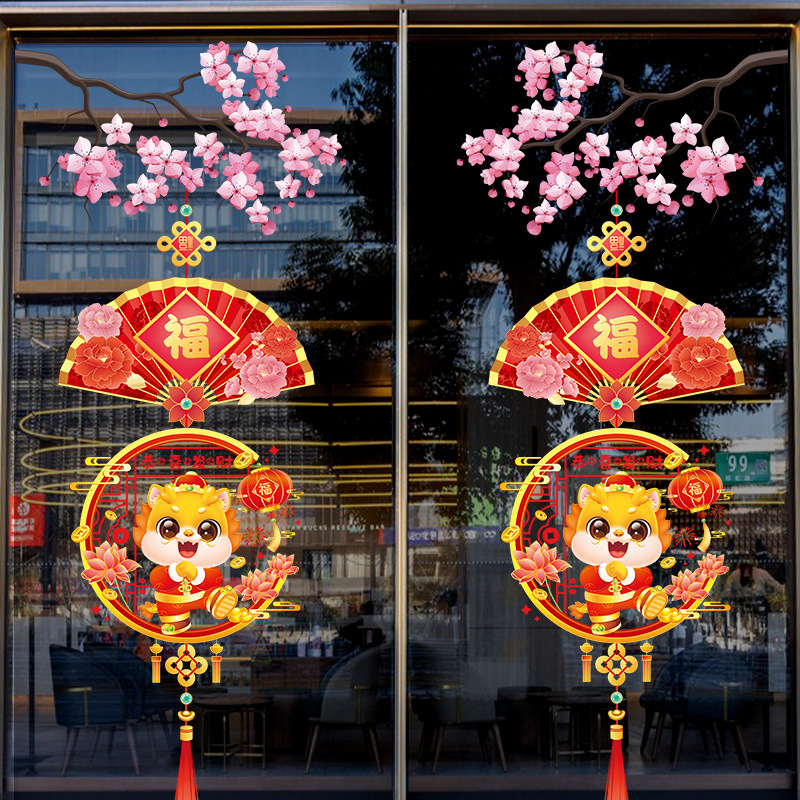 新年过年福字挂饰店铺商场橱窗玻璃装饰窗花贴纸门贴静电贴画
