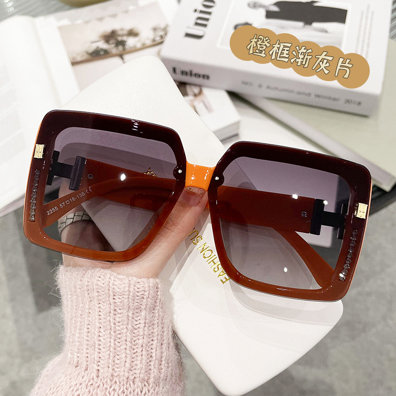 新款大框太阳镜女欧美个性大框镶钻眼镜显瘦偏光墨镜时尚明星同款