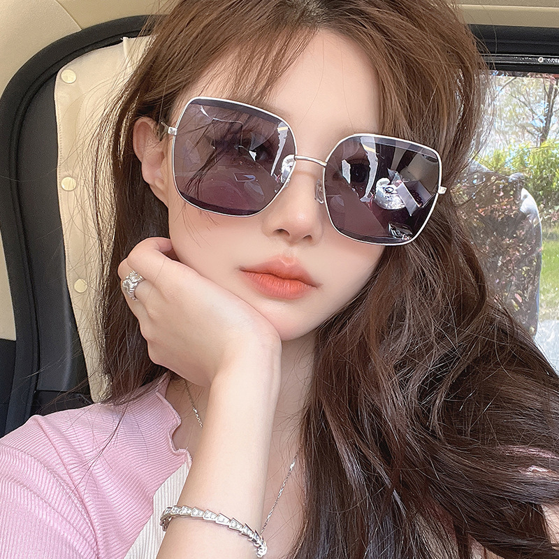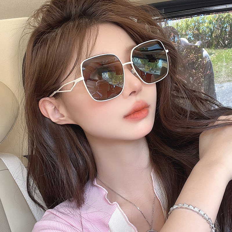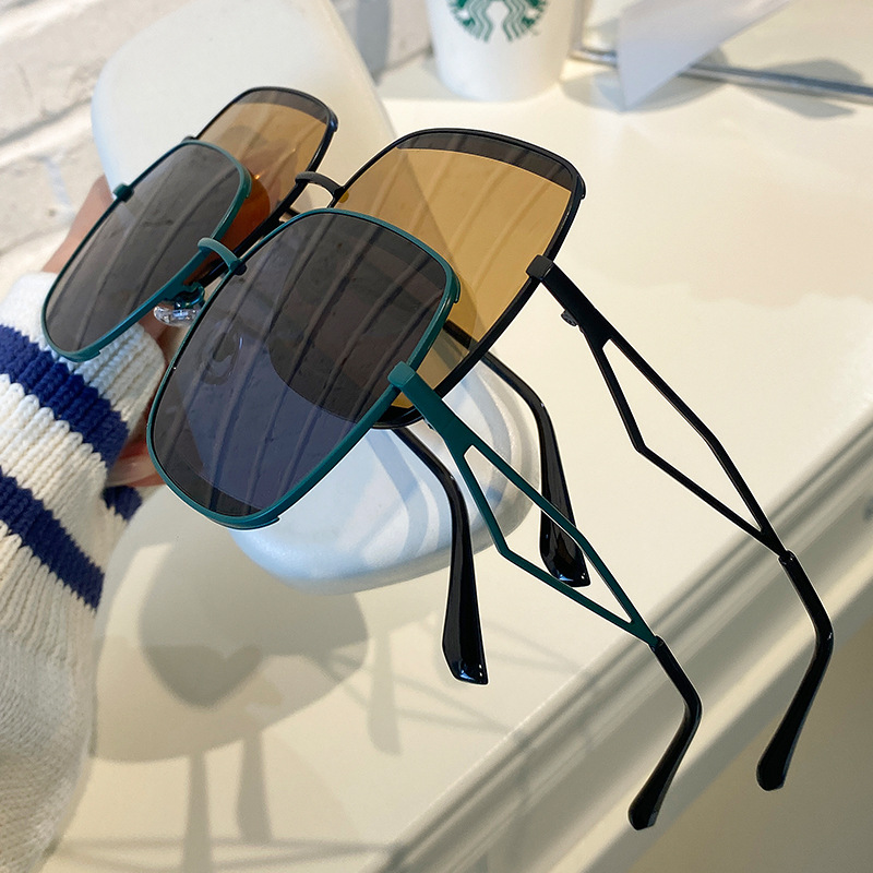 新款墨镜女网红街拍太阳镜复古方形镂空太阳眼镜大框显瘦7551