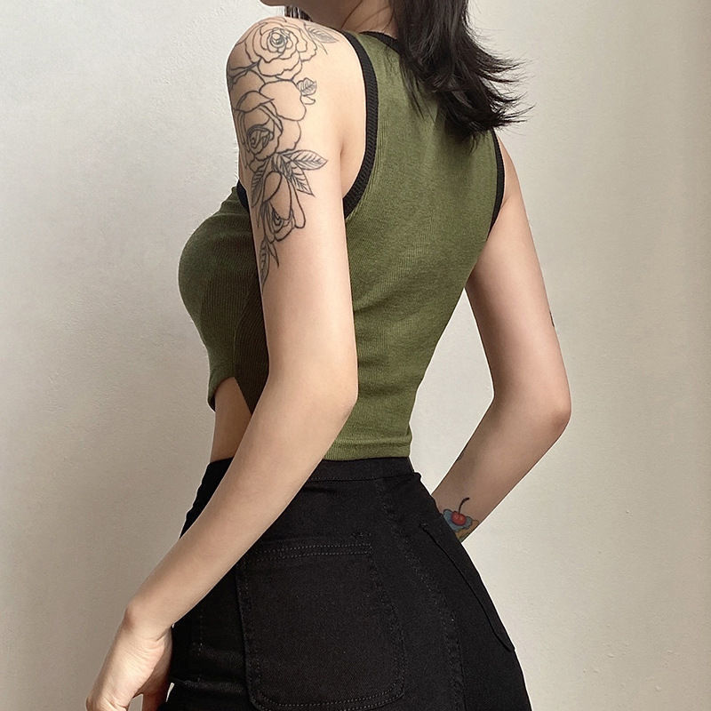 【月销10万】设计感圆领刺绣修身吊带背心2025夏季新款短款T恤