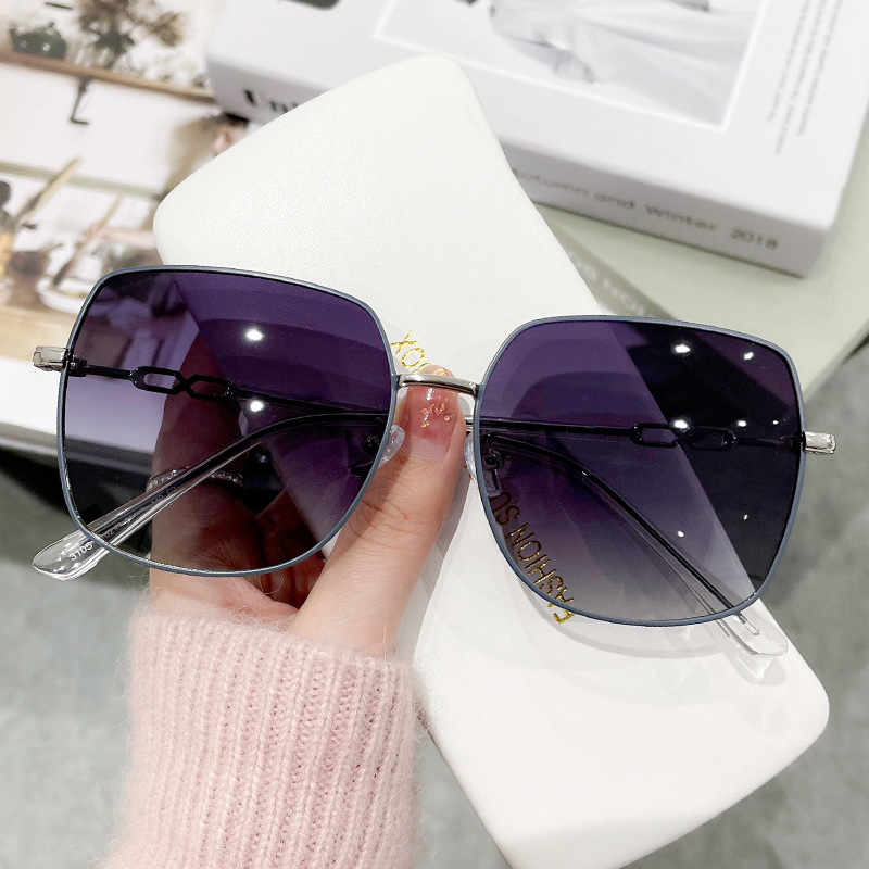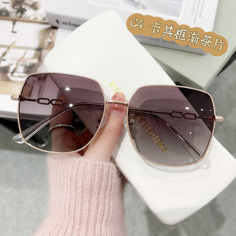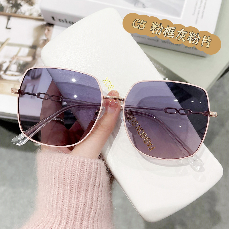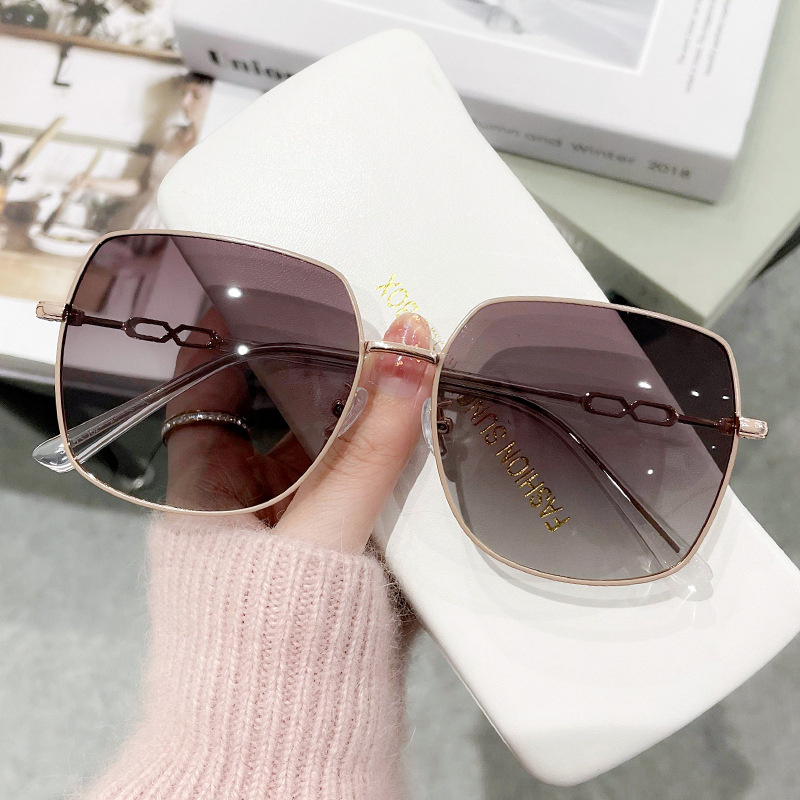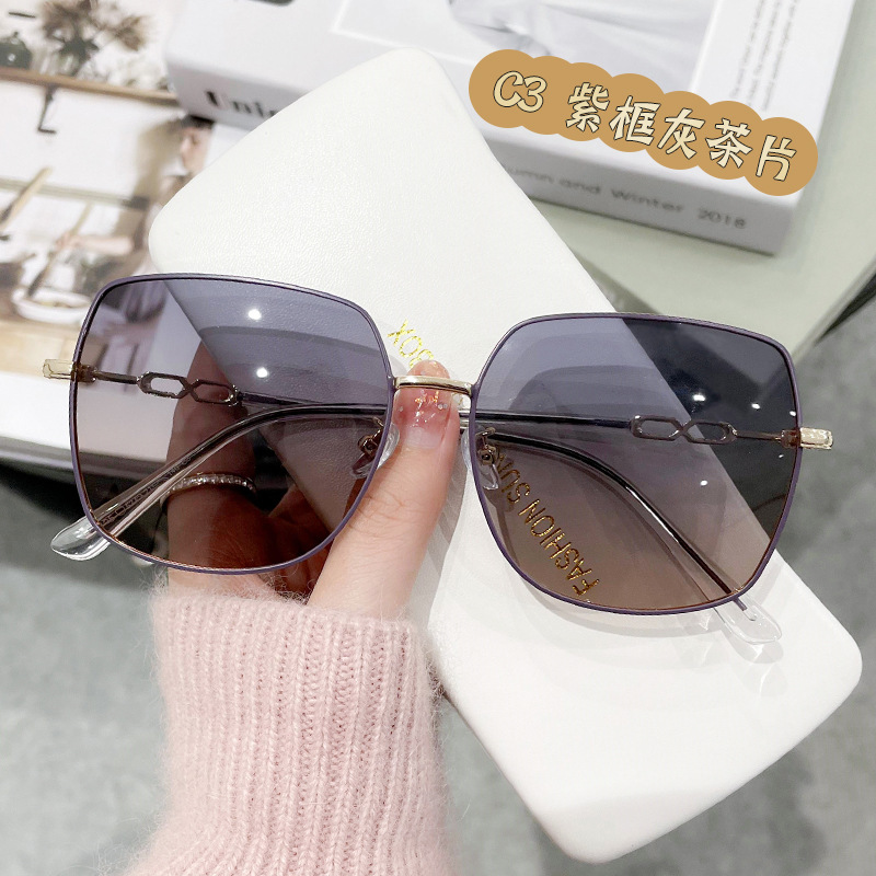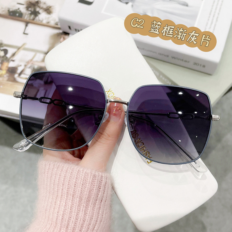 新款偏光太阳眼镜女网红方形金属防紫外线时尚墨镜潮大框瘦脸街拍