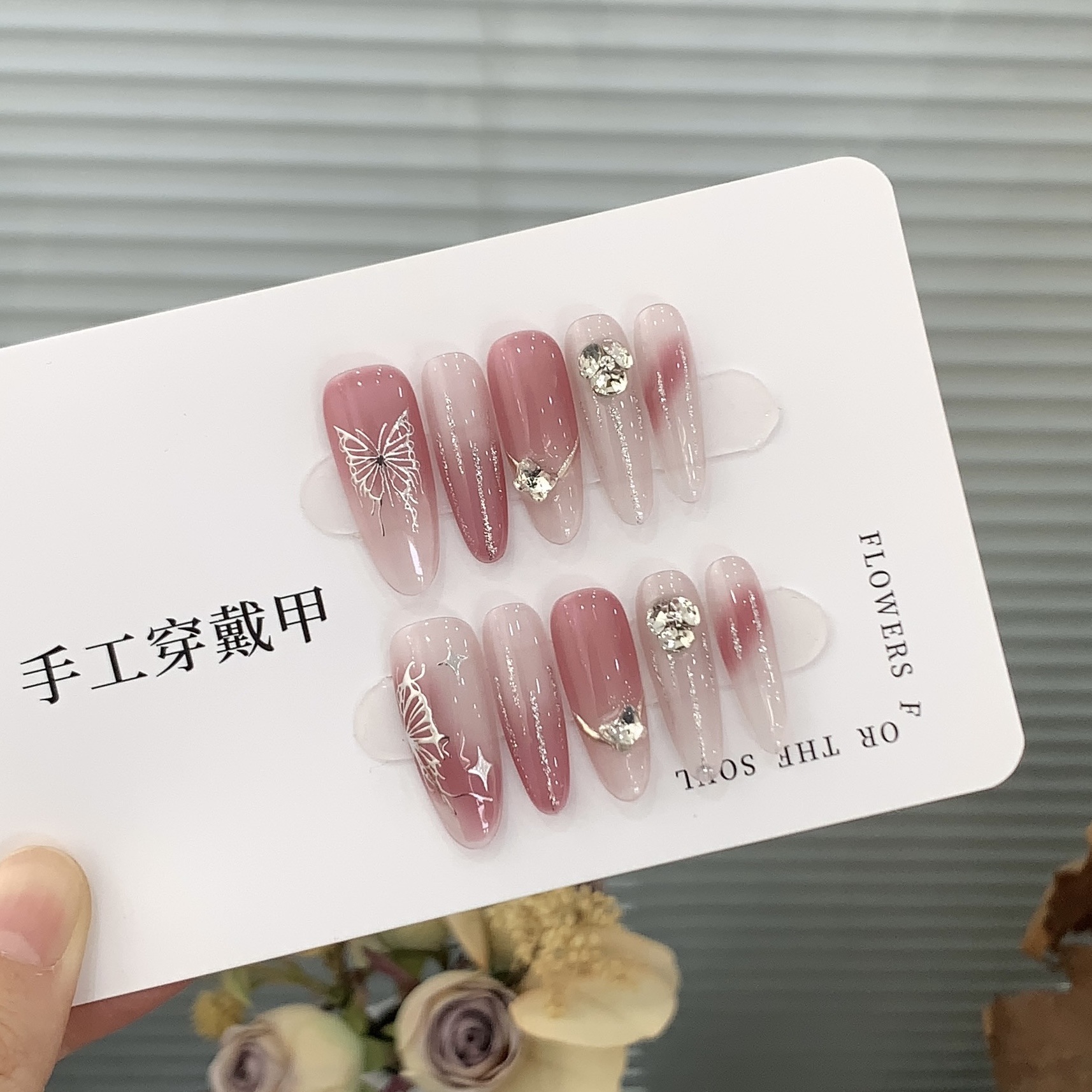 一只顾美甲厂 【Y】 纯手工冰透渐变高级感液态蝴蝶酒渍梅子贴