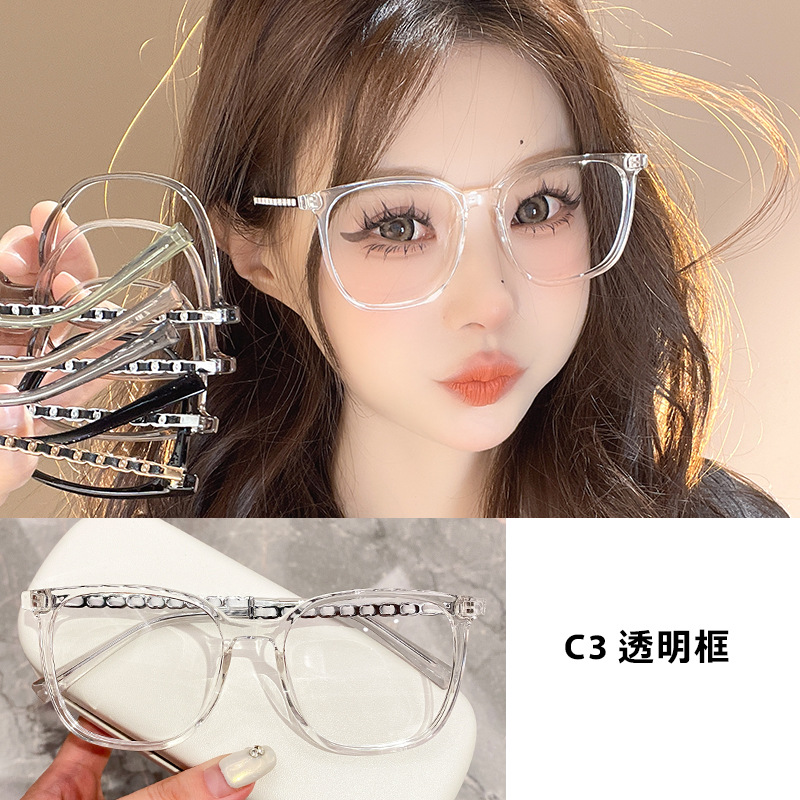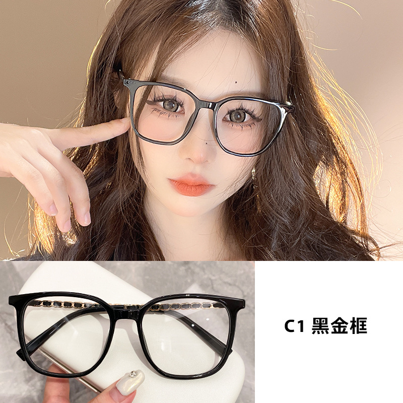 新款简约大框眼镜架显瘦平光镜防蓝光穿皮编织镜腿可配度数2638