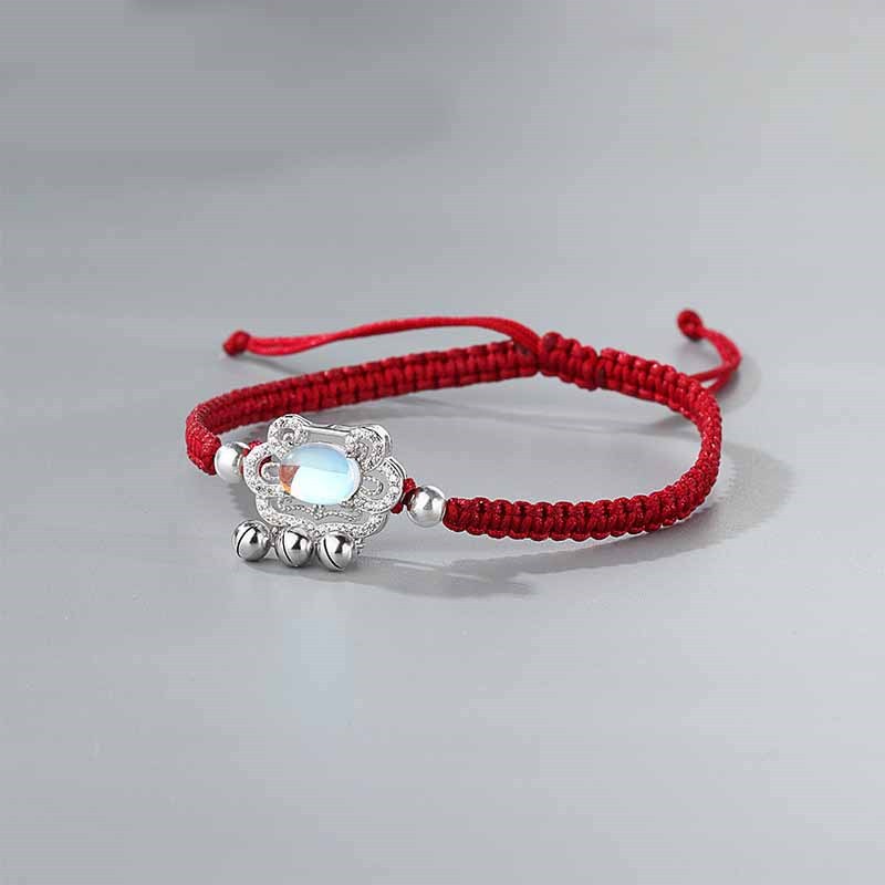 S925银月光石平安锁长命锁情侣手链简约黑红手绳国潮古风名族礼物