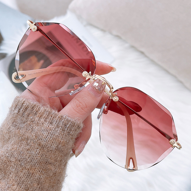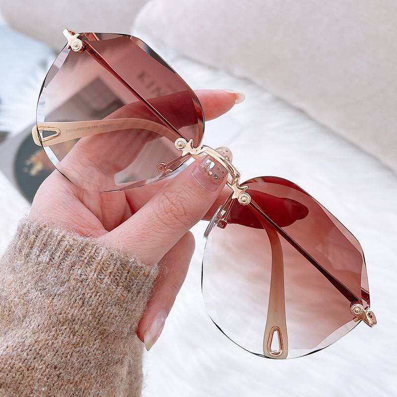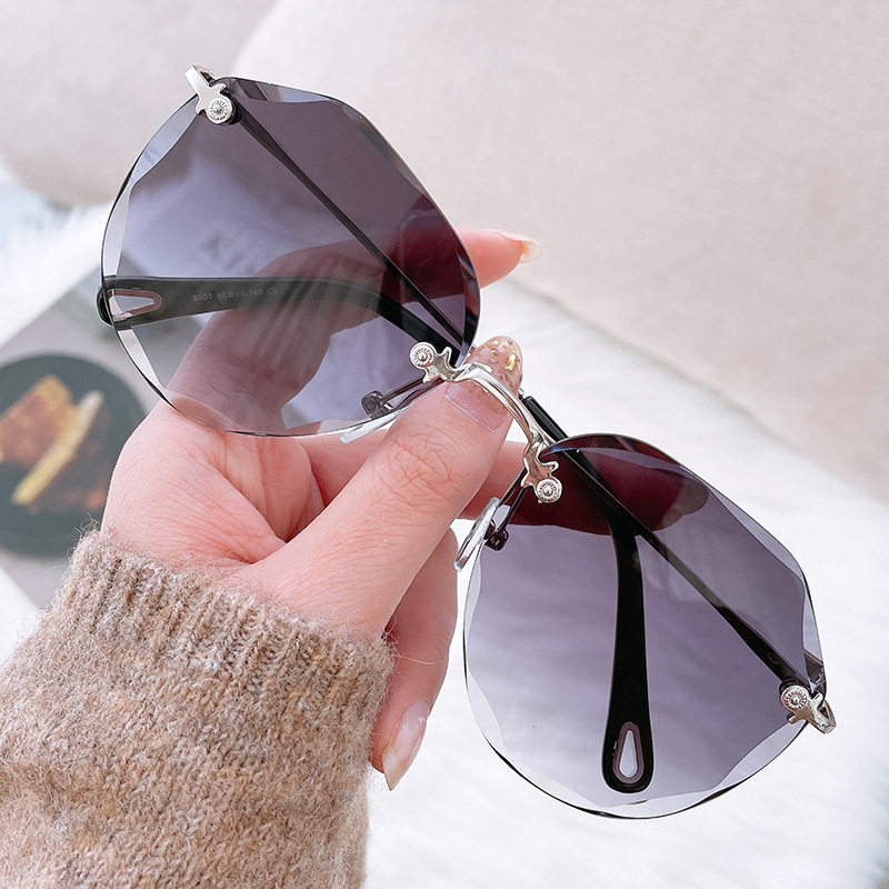 新款无框太阳镜女士圆脸潮流街拍切边金属墨镜防紫外线眼镜5901