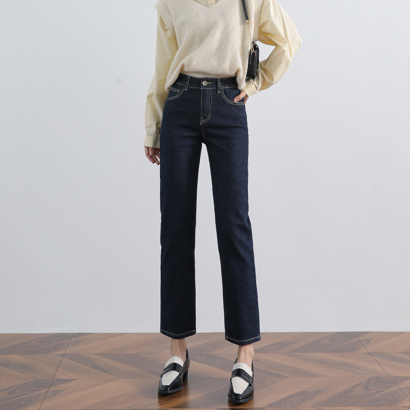 铭海秋冬新款弹力直筒牛仔裤女高腰修身九分法棍裤显瘦烟管裤