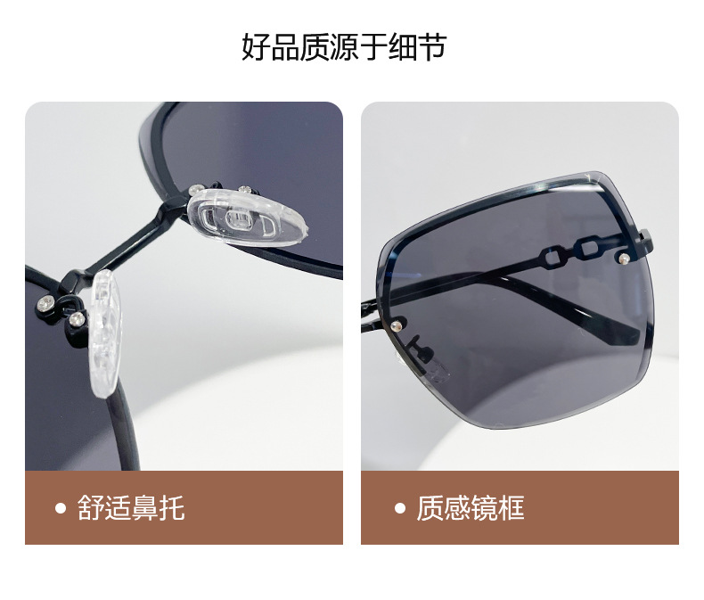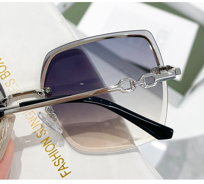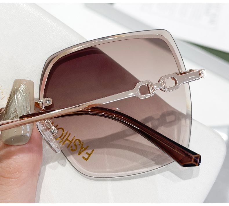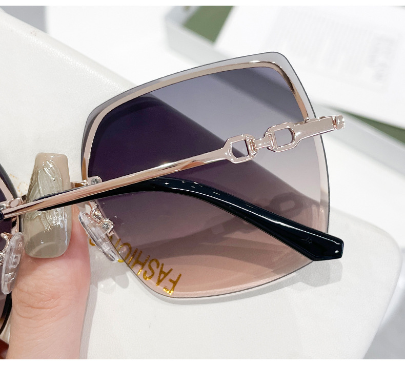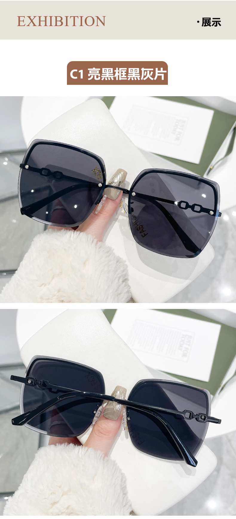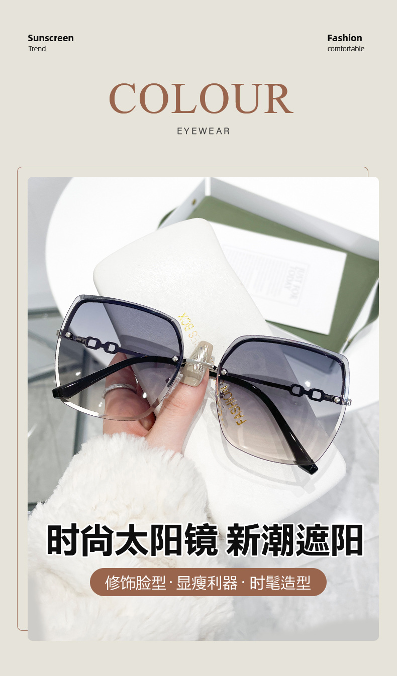 新款半框切边太阳镜女大框显瘦显脸小防紫外线防晒墨镜58107