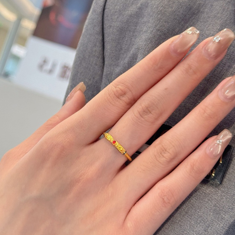 小红书爆款雕花红钻戒指复古宫廷风珐琅花丝轻奢精致指环一件代发