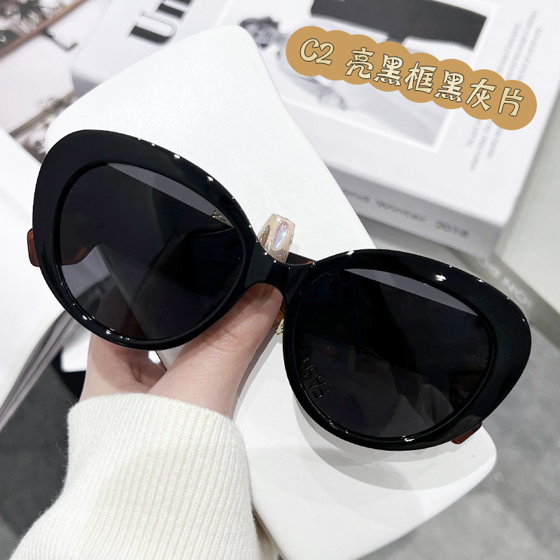 新款欧美潮流大框太阳镜女墨镜简约猫眼时尚大框防紫外线偏光眼镜