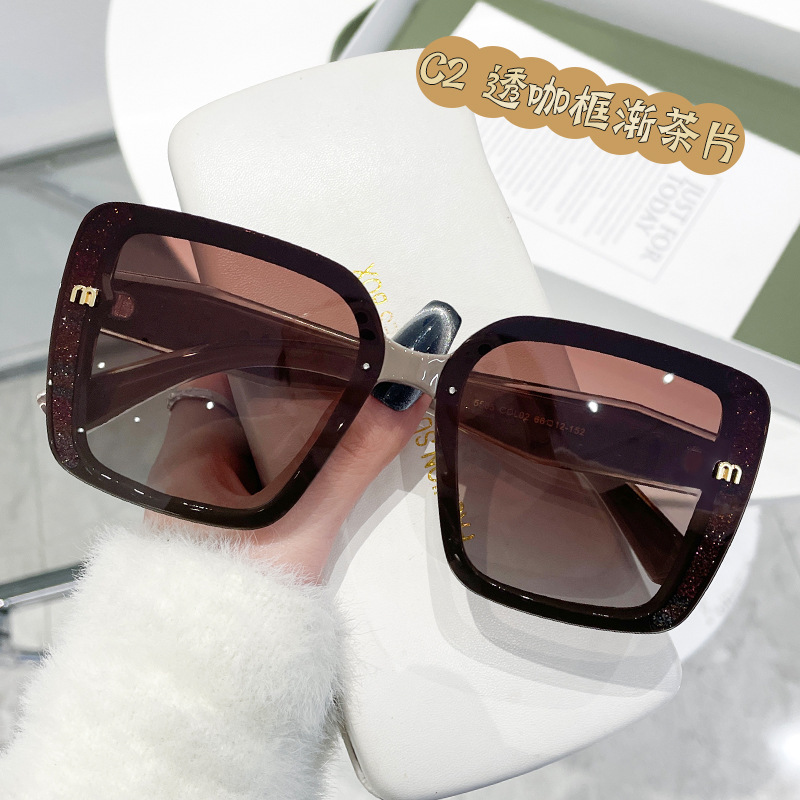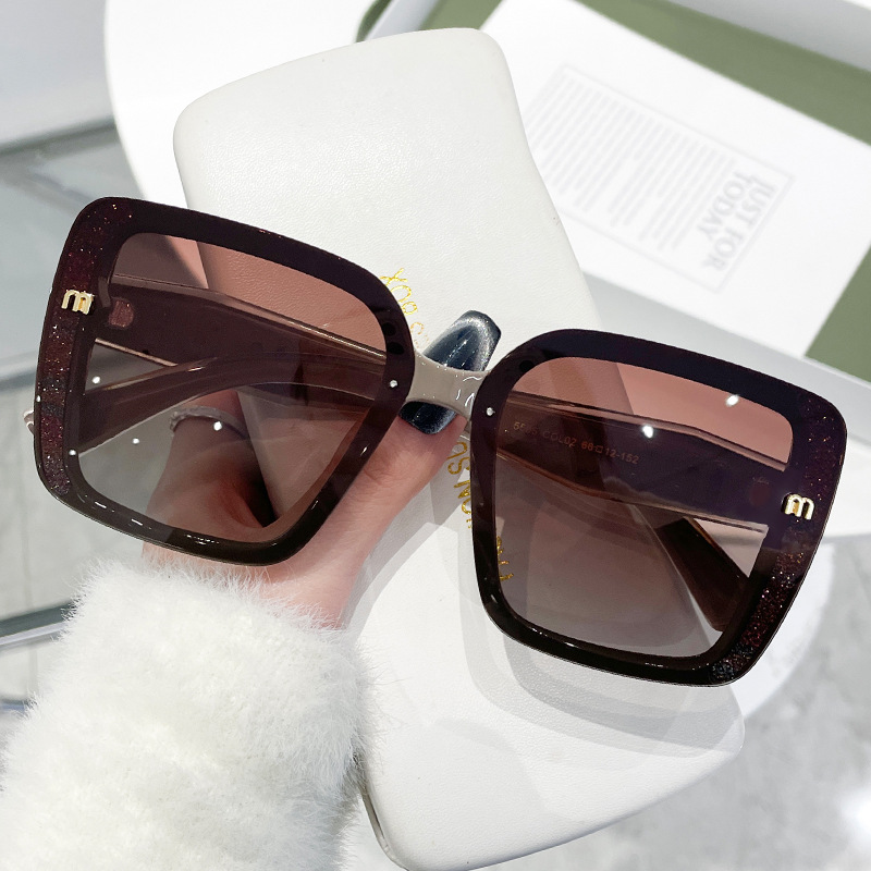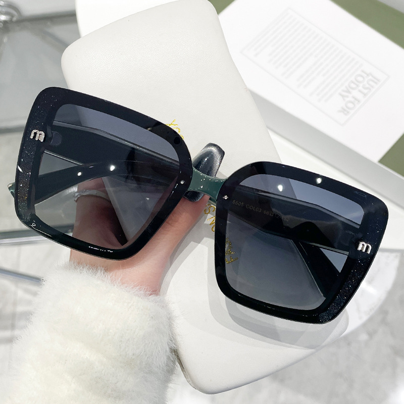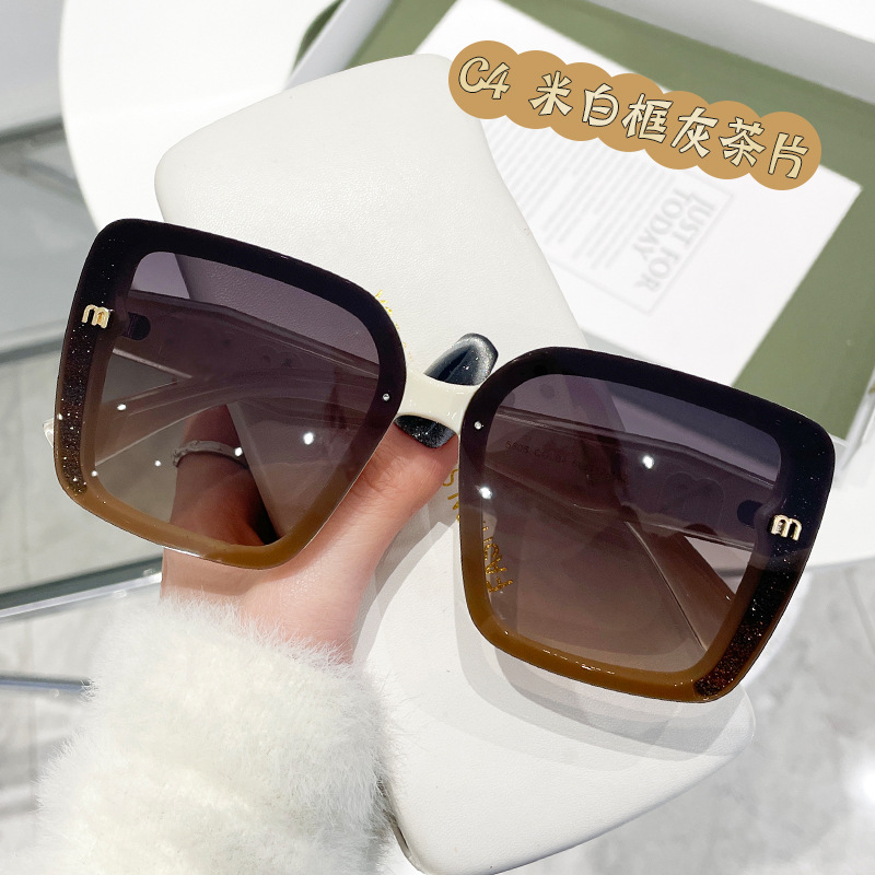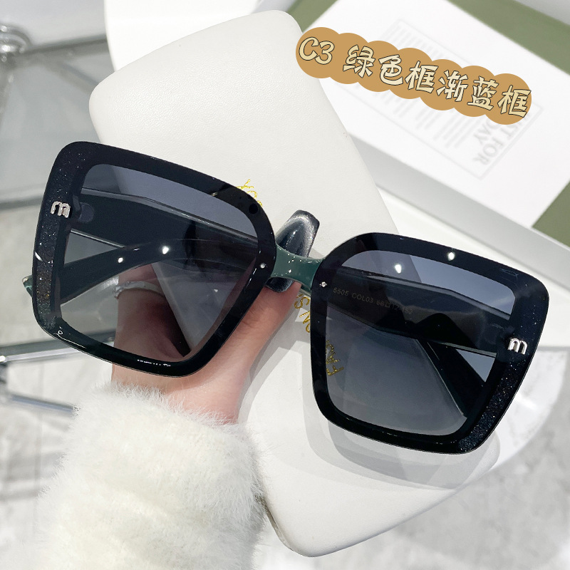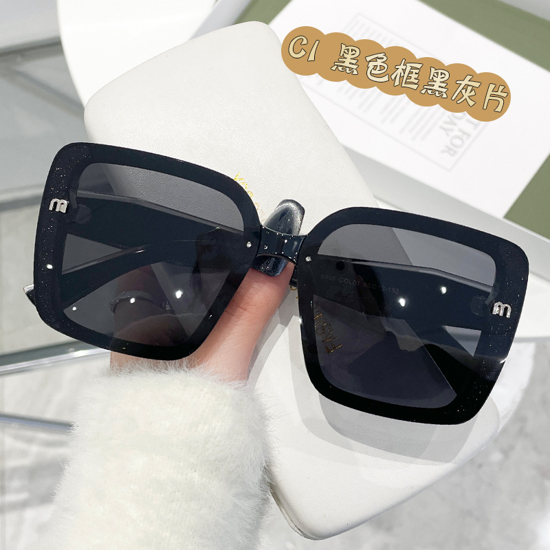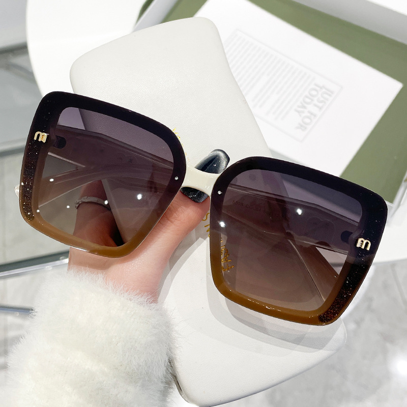 复古风切边大框墨镜显瘦高级感侧边闪粉欧美风太阳镜时尚街拍5505