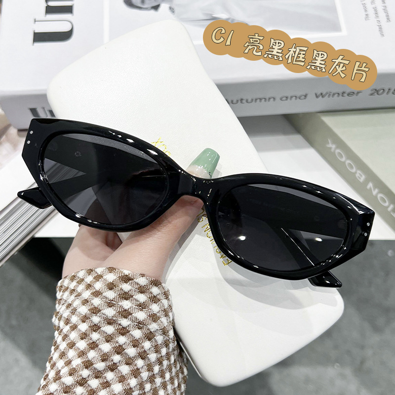 新款复古小框猫眼墨镜女高级感防晒街拍防紫外线韩版太阳镜男