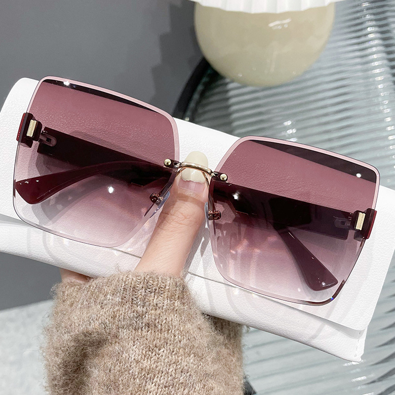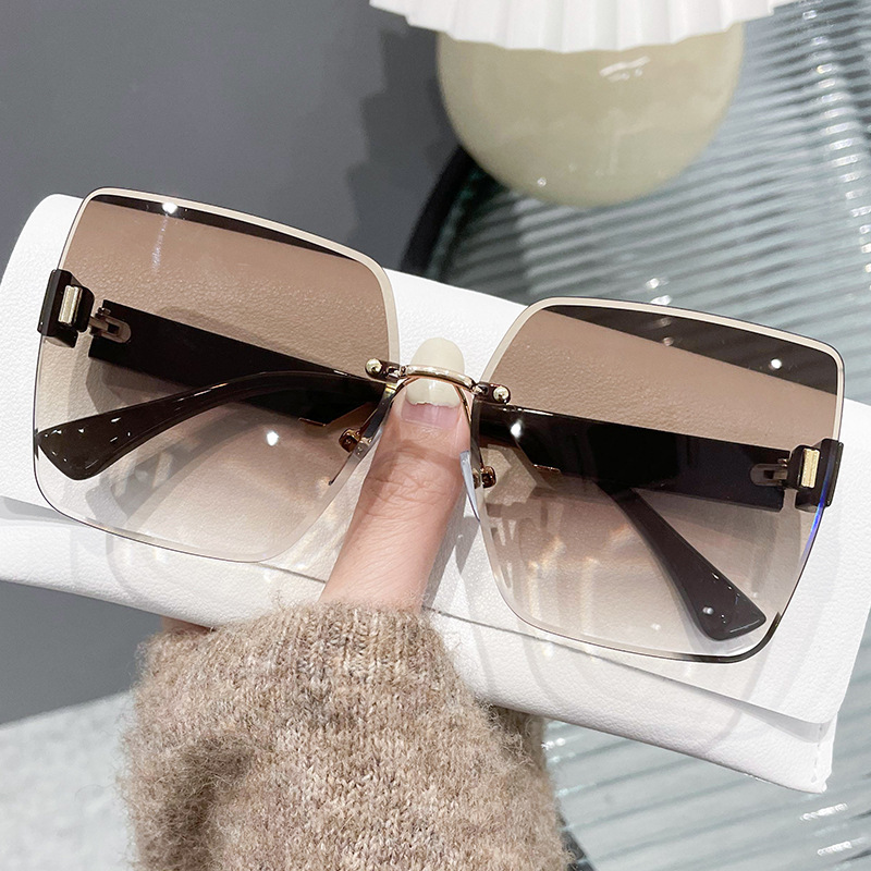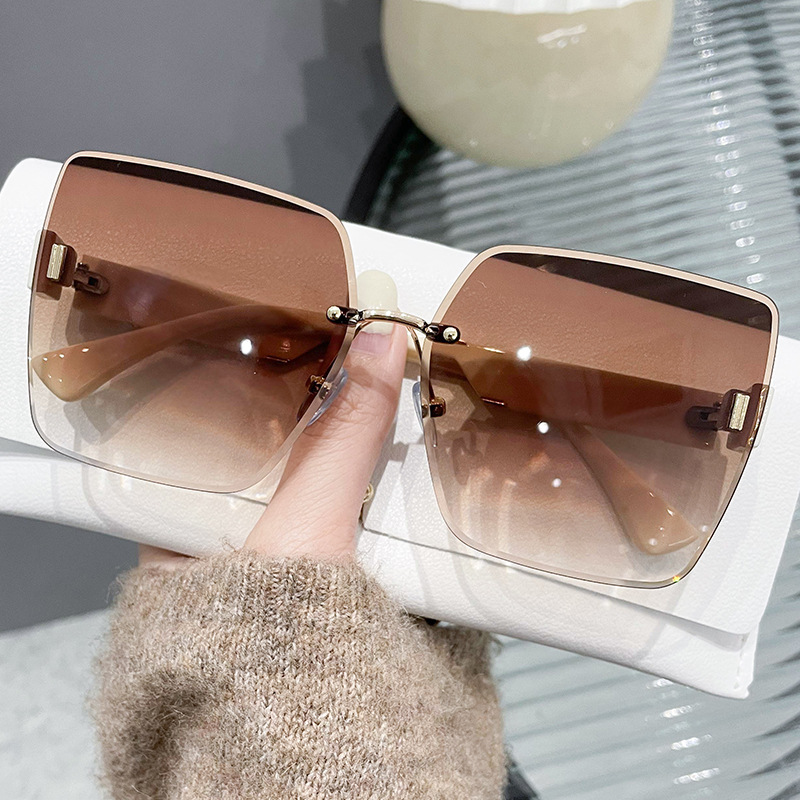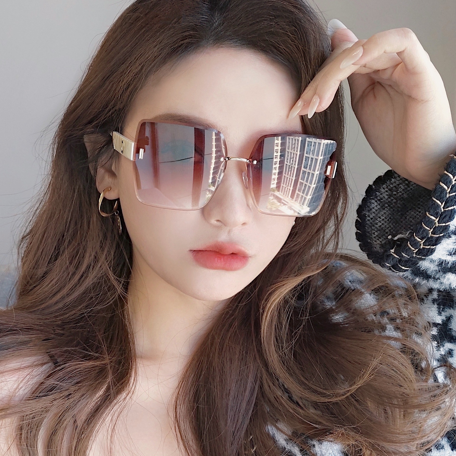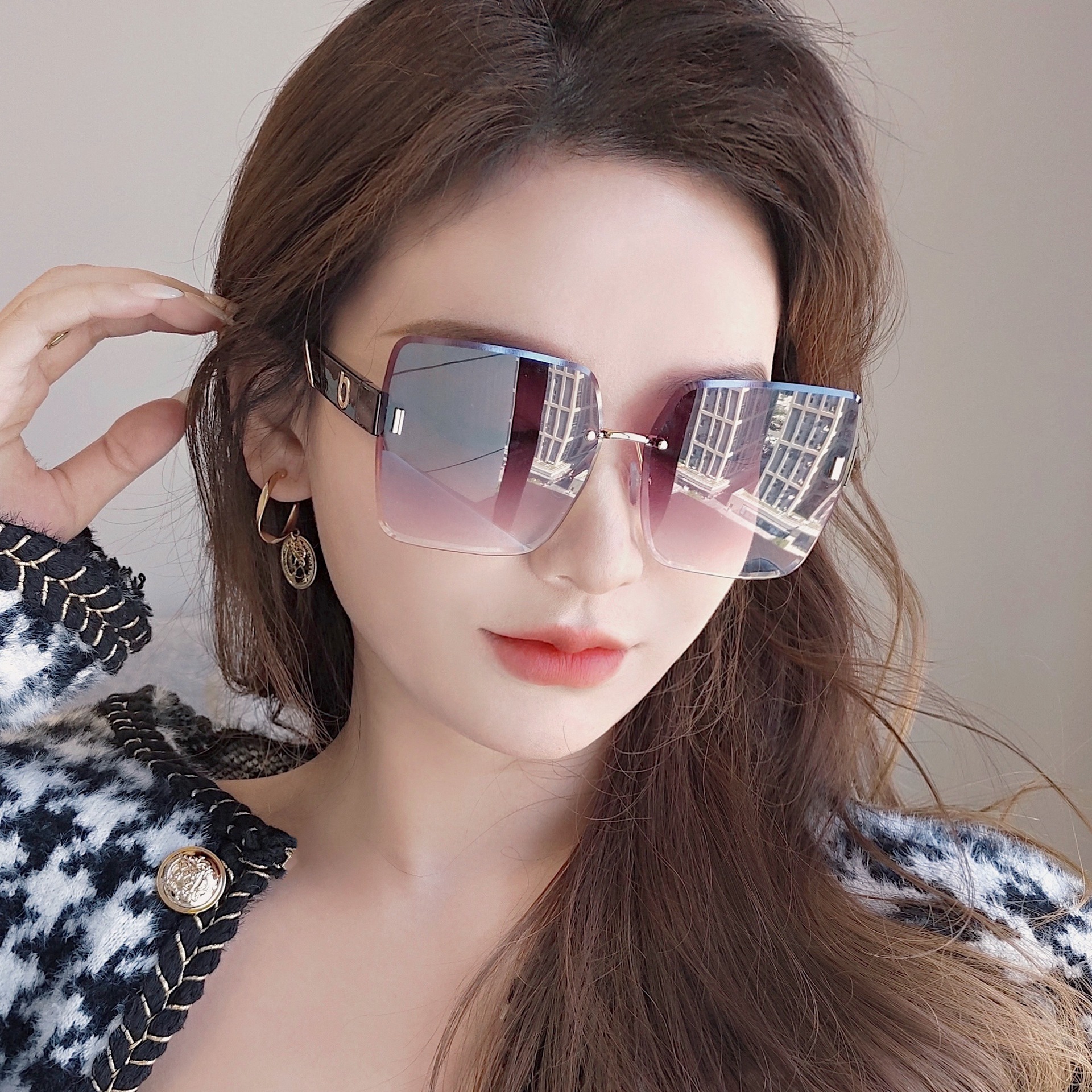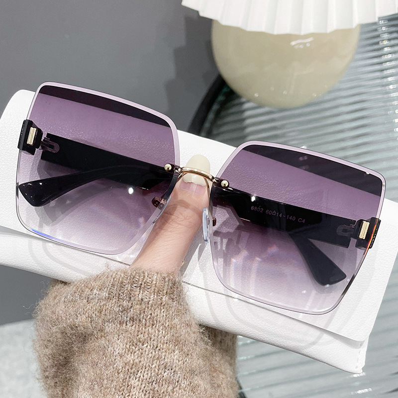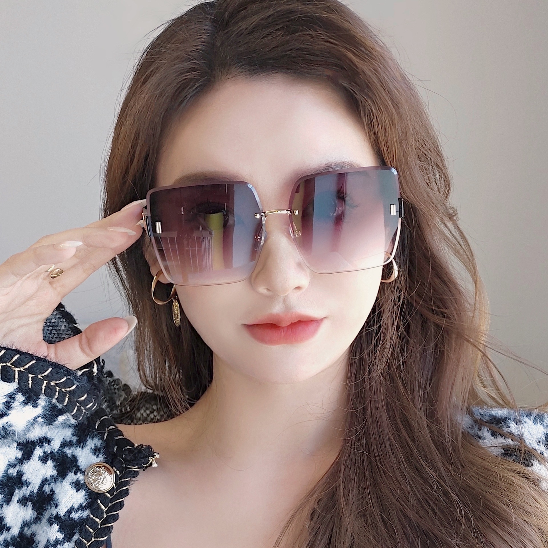 新款时尚太阳镜女个性无框墨镜抖音网红直播眼镜切边防紫外线6802