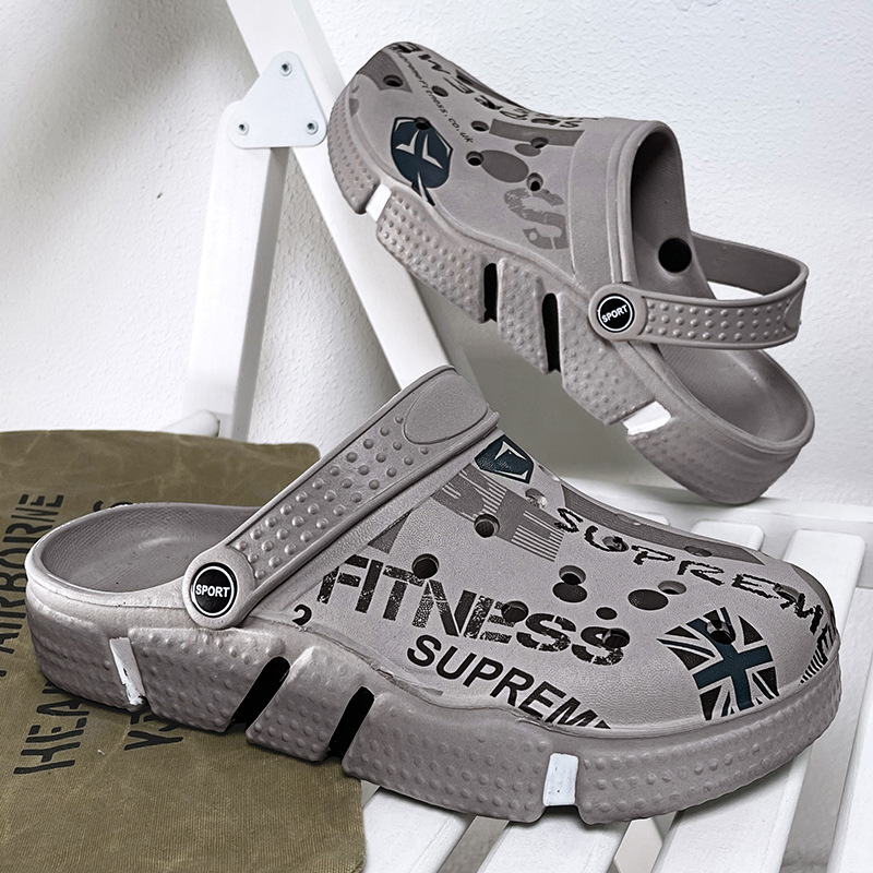 夏季新款沙滩鞋男款户外凉拖情侣百搭包头洞洞鞋男休闲花园鞋