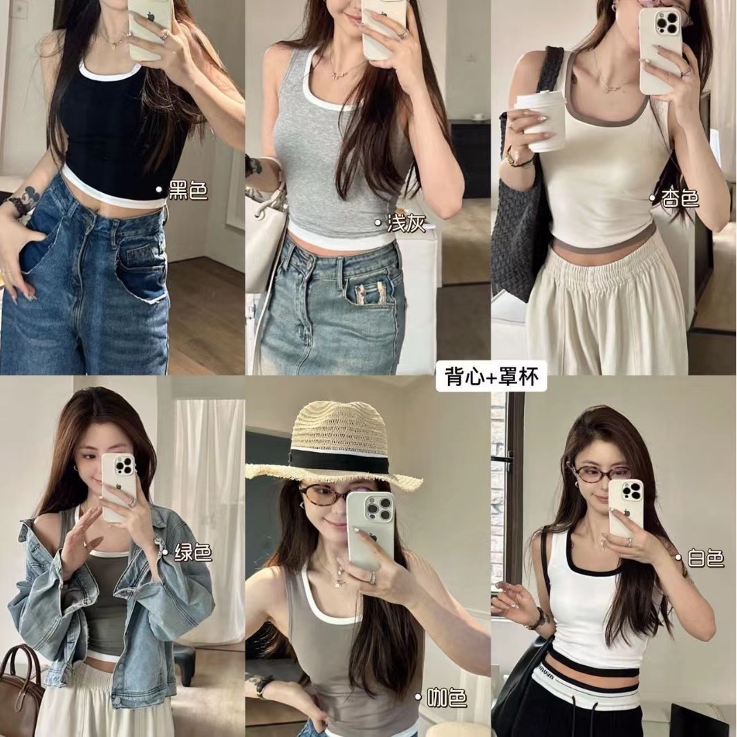 韩社6613#撞色拼接设计款一体杯背心女夏内搭外穿显瘦吊带背心上