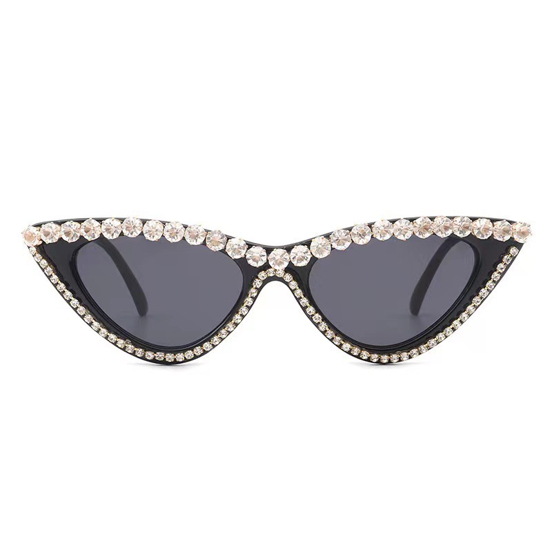 三角眼镜 复古时尚夸张带钻猫眼墨镜跨境猫眼贴钻太阳镜 欧美潮款